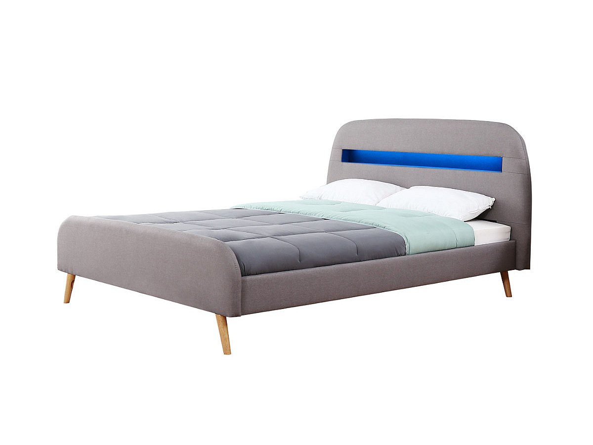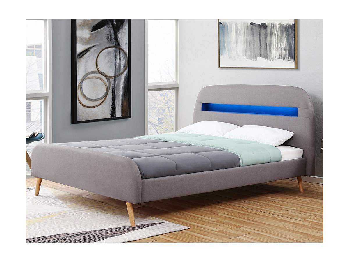 Lit AMBROISE - 160x200cm - Tissu gris avec LEDs