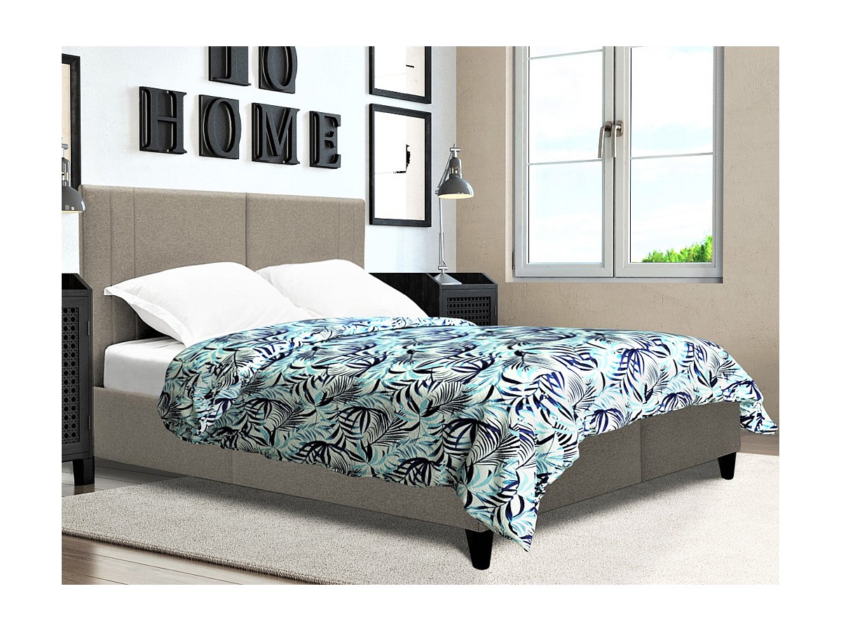 Lit AUGUSTE tête de lit coutures verticales - 140 x 190 cm - Tissu - Beige