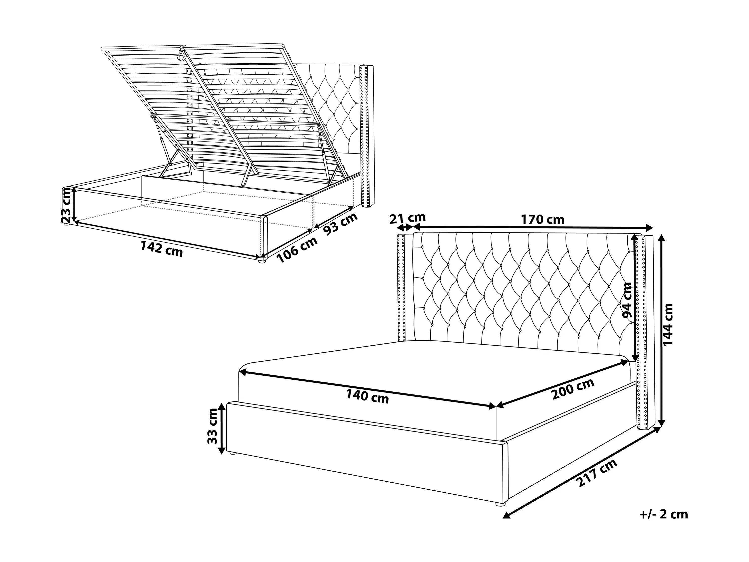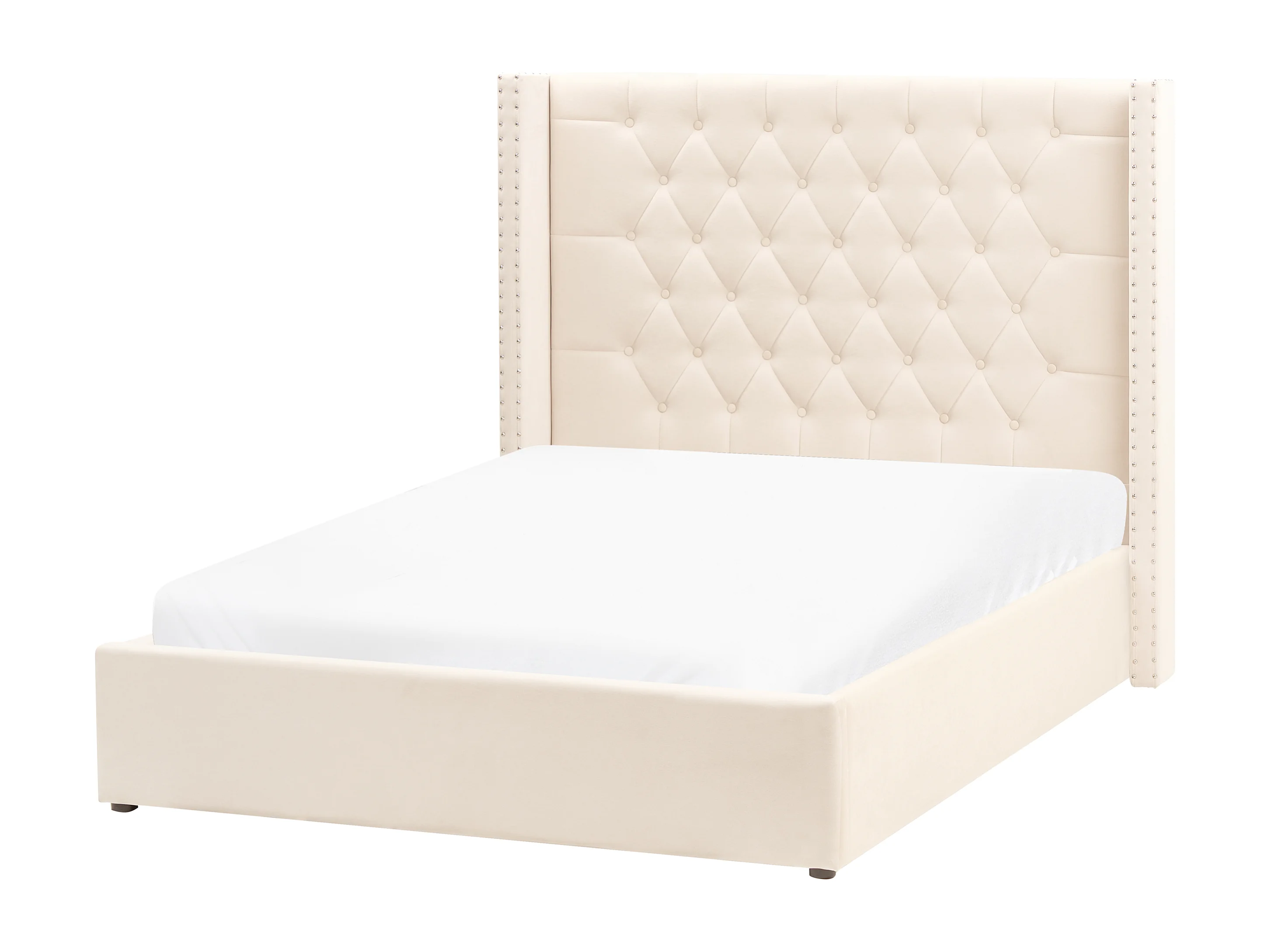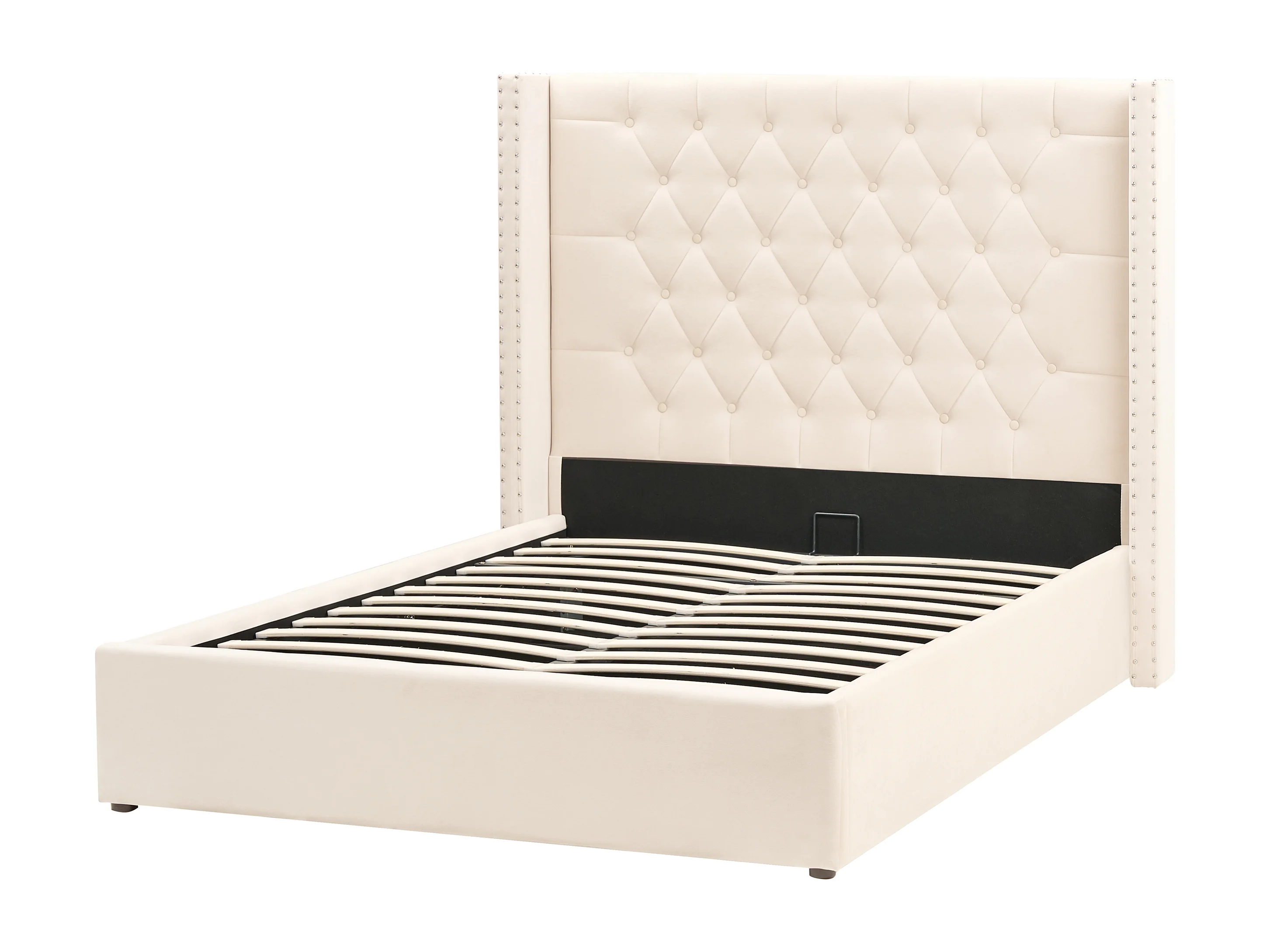 Lit ottoman Velours LUBBON 140 x 200 cm Blanc cassé