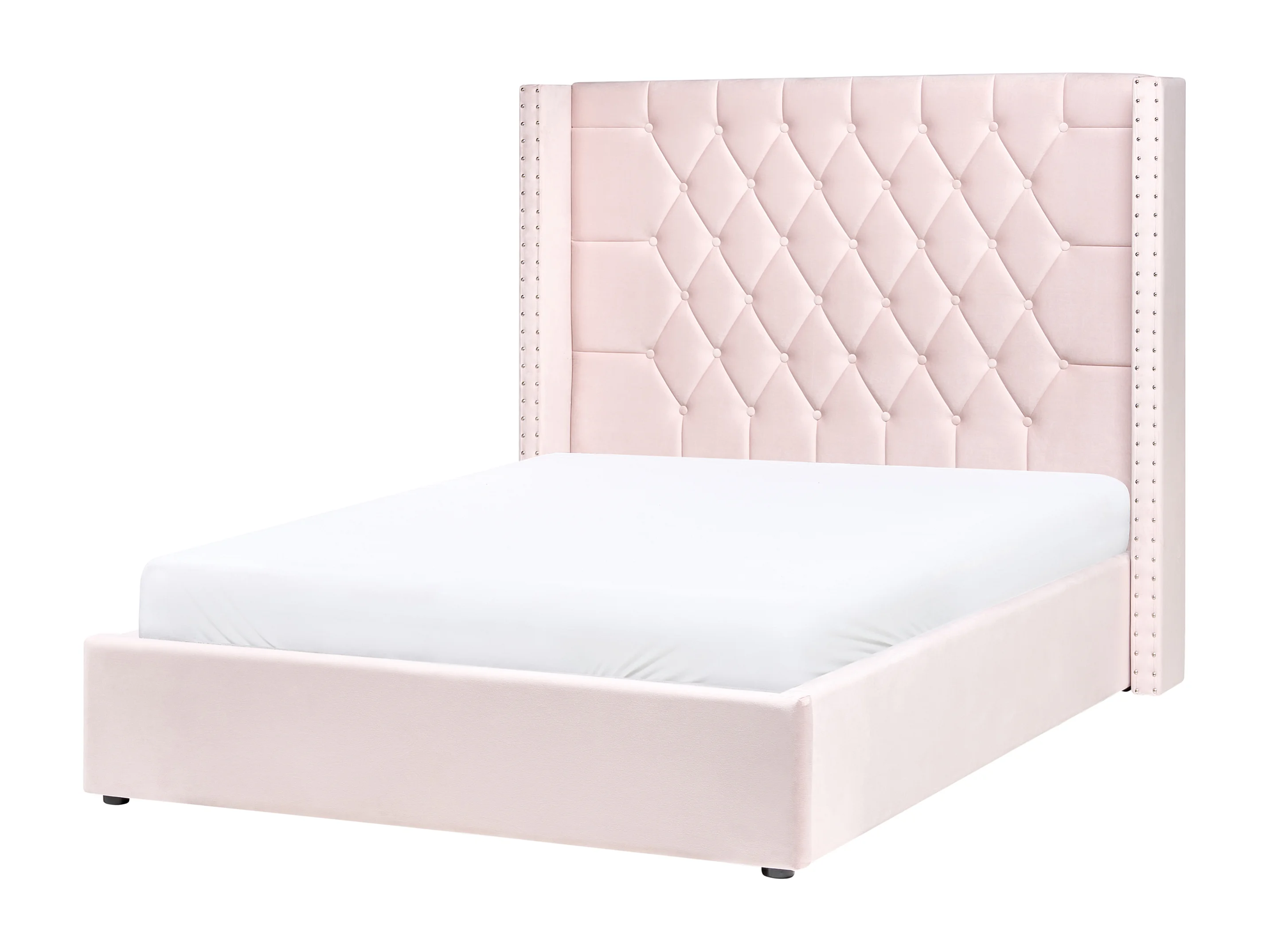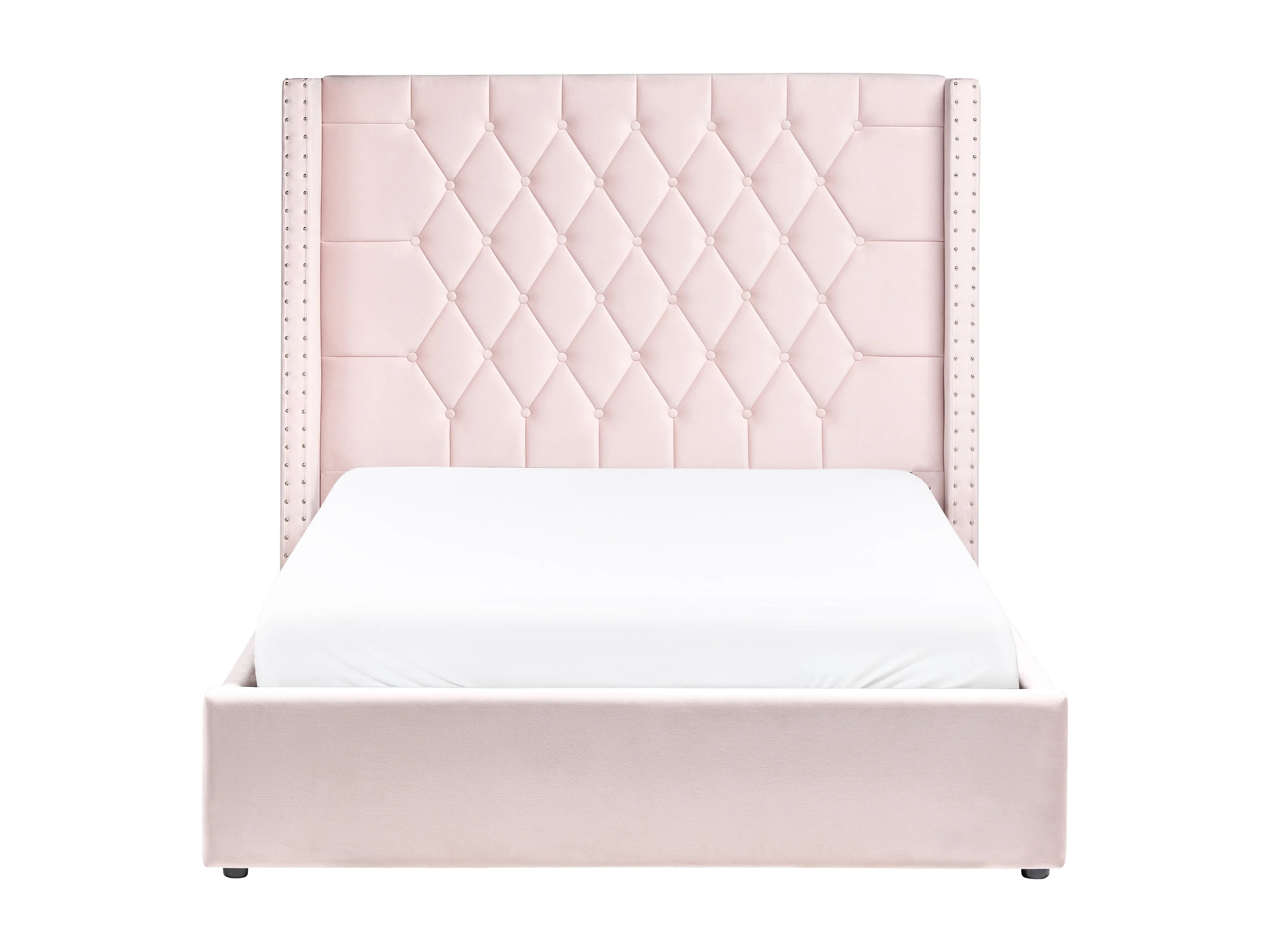 Lit ottoman Velours LUBBON 140 x 200 cm Rose pastel Rose