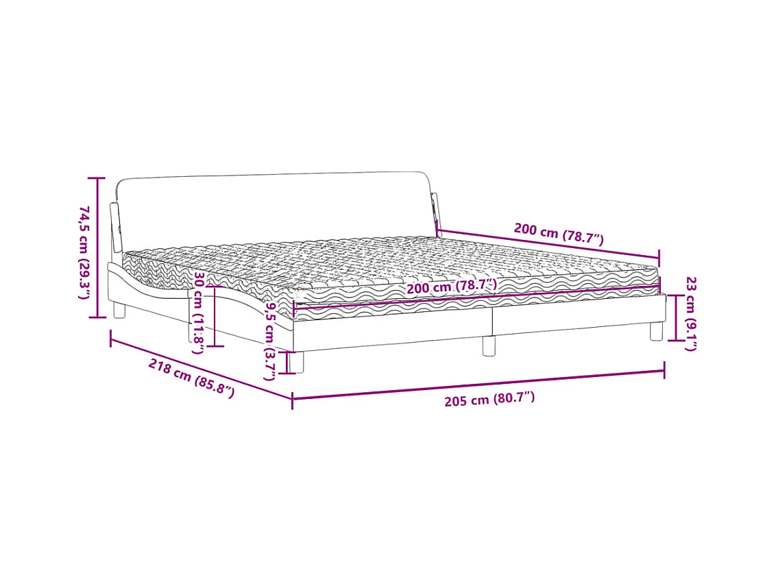 Sommier à lattes de lit avec matelas Crème 200x200 cm Tissu