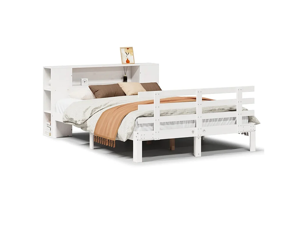 Lit bibliothèque sans matelas blanc 140x190 cm bois pin massif