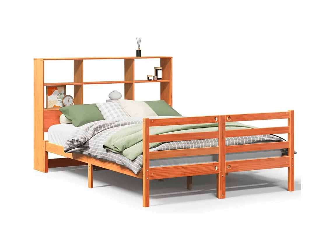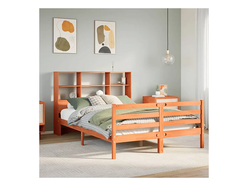 Lit bibliothèque sans matelas cire marron 120x200 cm pin massif