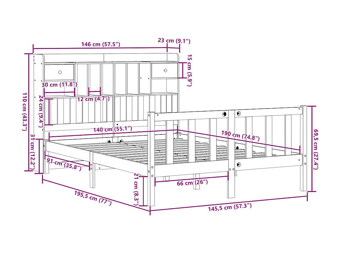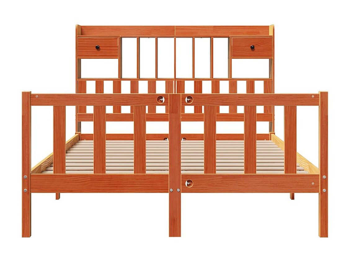 Lit bibliothèque sans matelas cire marron 140x190 cm pin massif