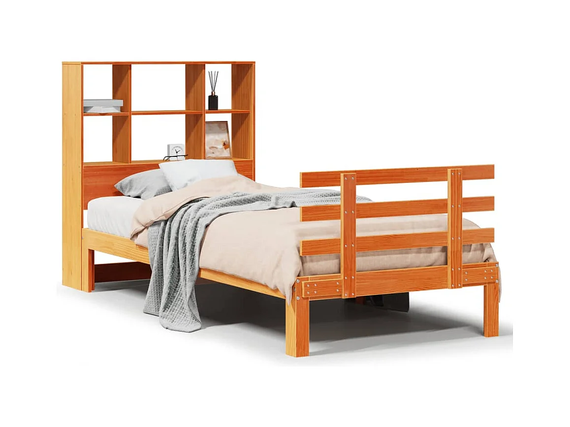 Lit bibliothèque sans matelas cire marron 75x190 cm pin massif