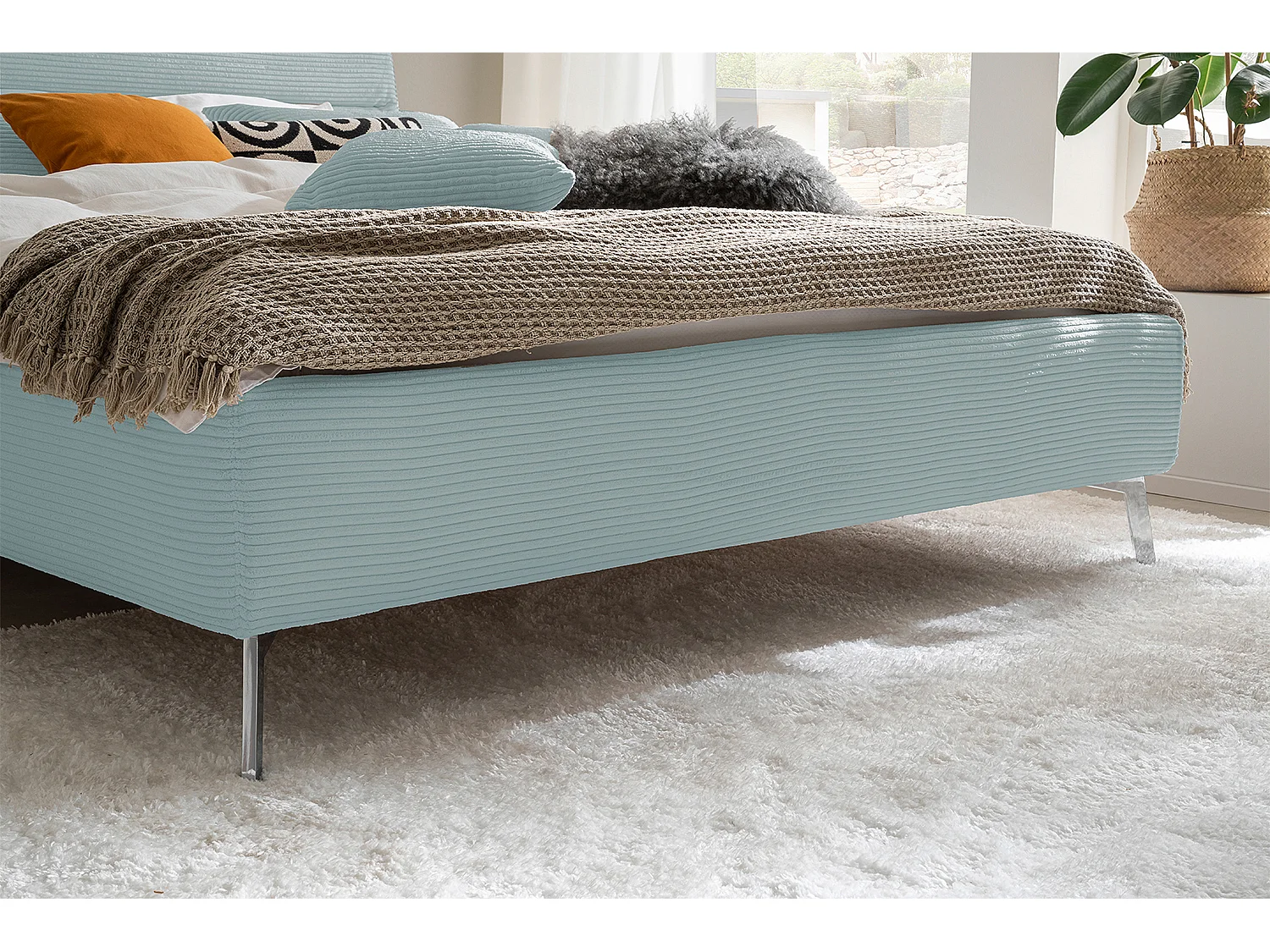 Lit - bleu clair velours côtelé - REMO