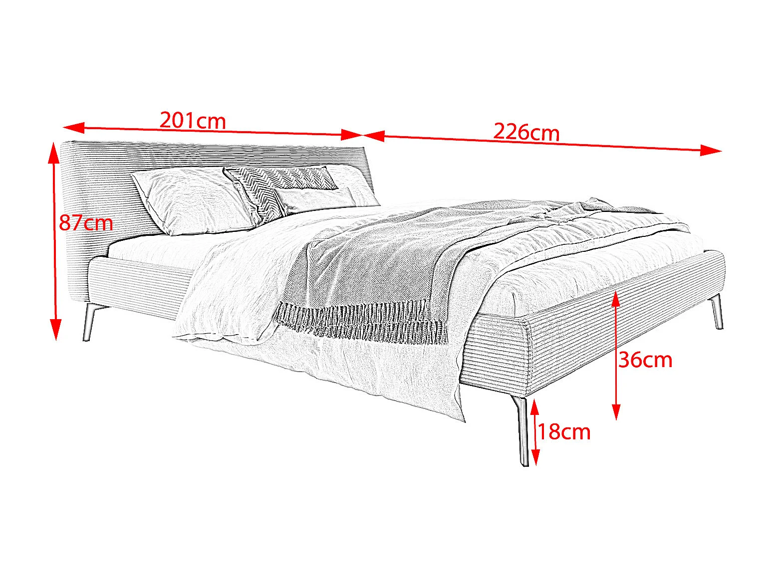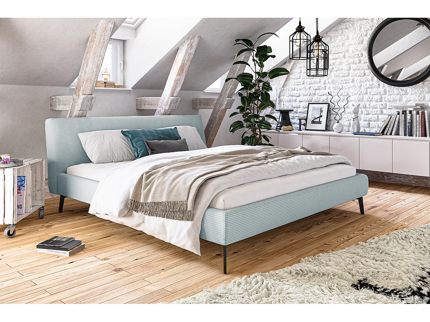 Lit - bleu clair velours côtelé - VALERIE