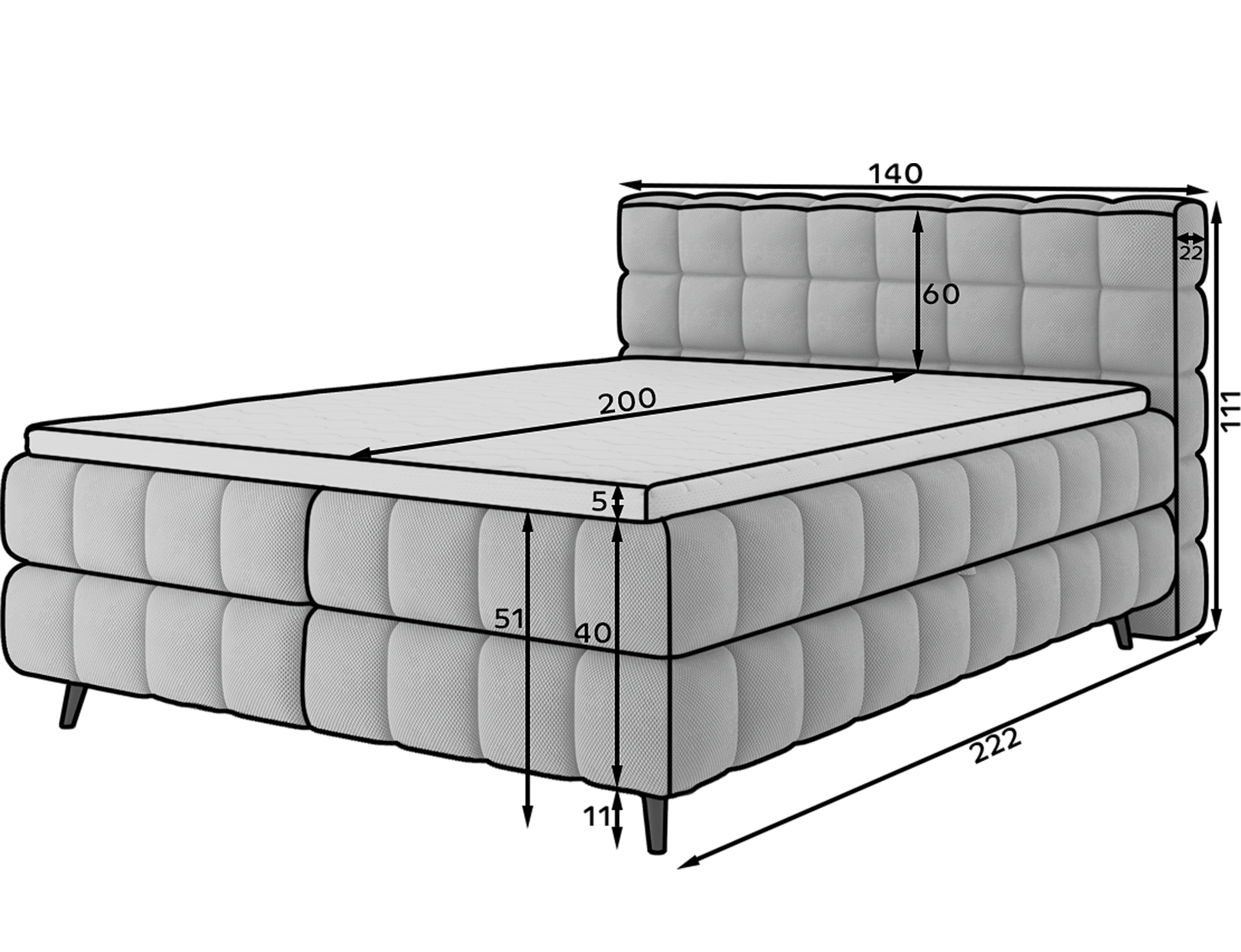 Lit box spring Damian/140x200/revêtement tissu/Blanc