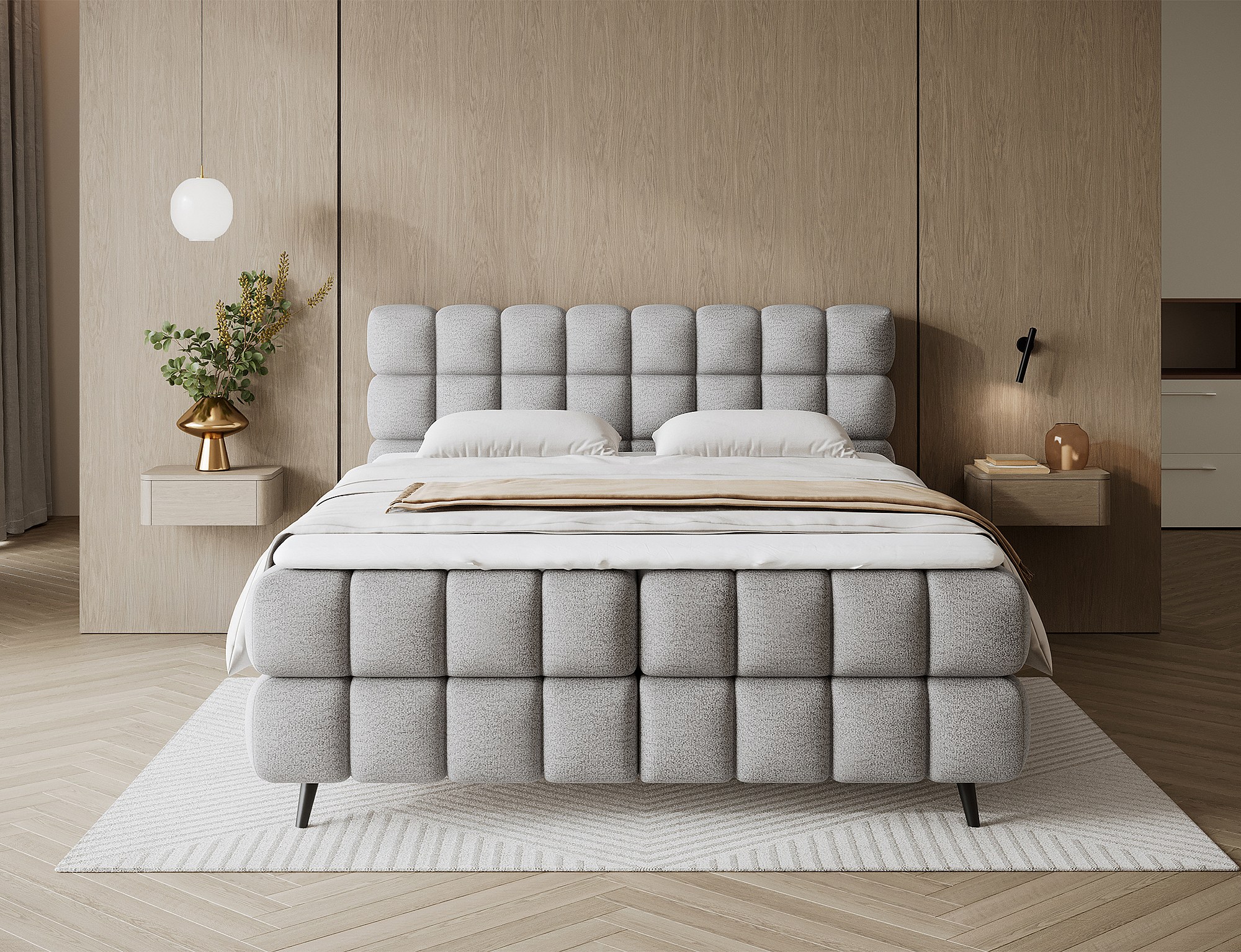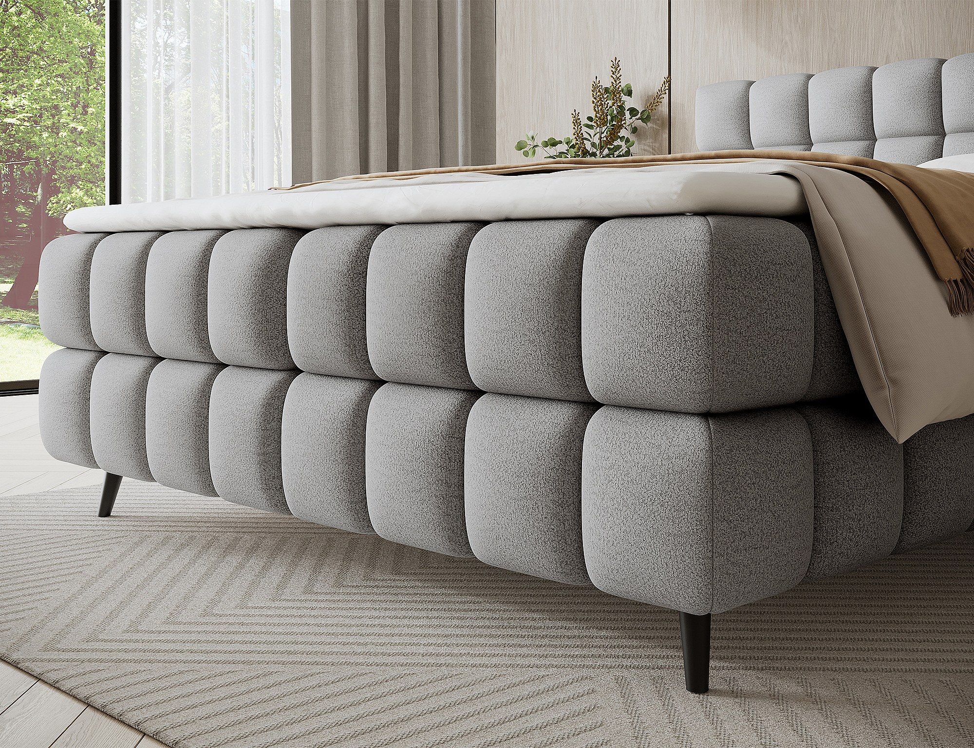 Lit box spring Damian/140x200/revêtement tissu/Gris
