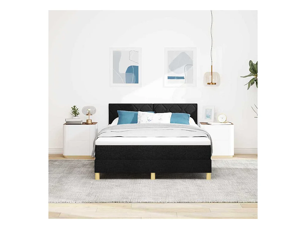 Lit boxspring avec matelas avec matelas Noir 140 x 200 cm tissu