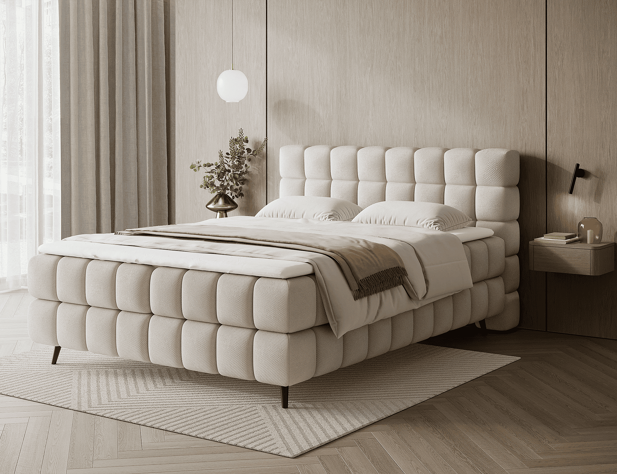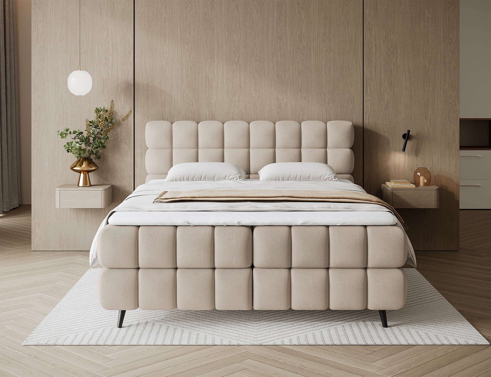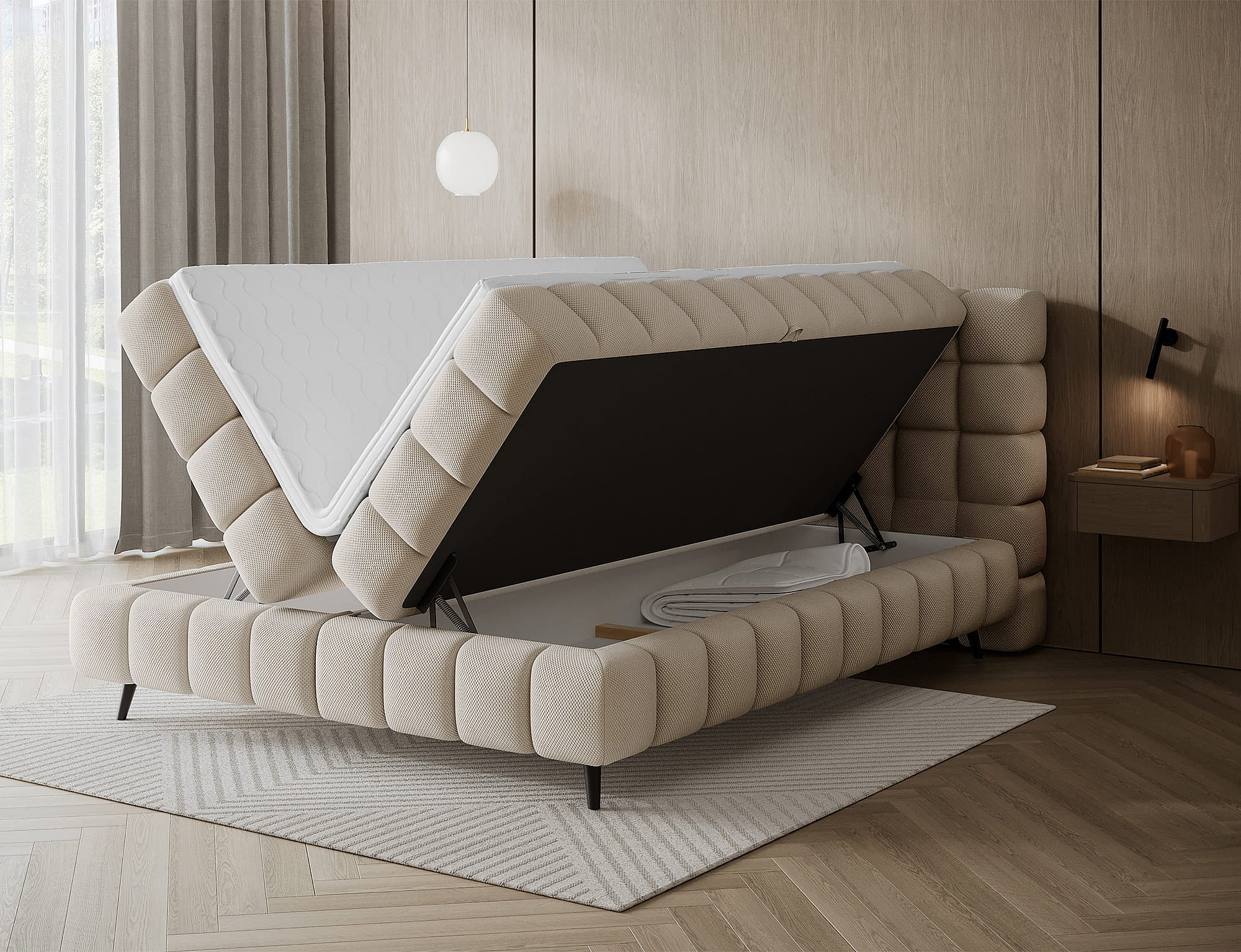 Lit boxspring Damian/180x200/revêtement tissu/Beige