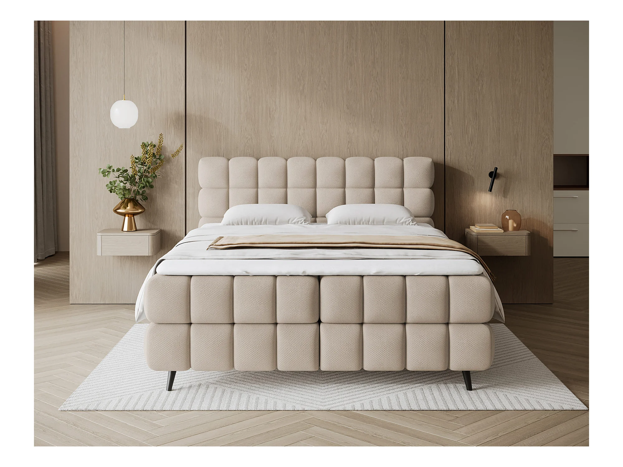 Lit continental Mars avec sommier tissu Riviera Beige 180x200 cm