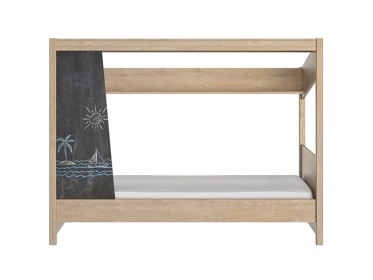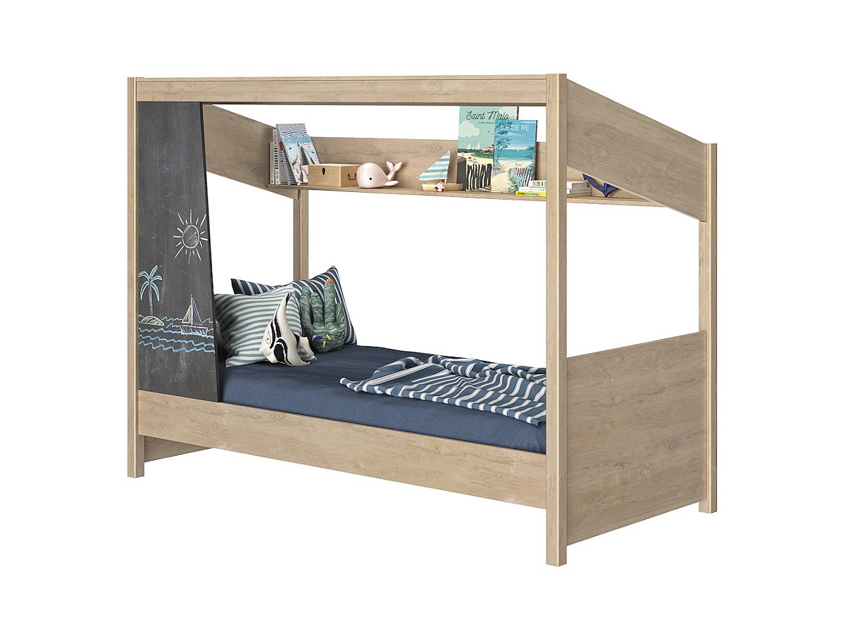 Lit cabane NATHAN avec tableau en ardoise et rangements - 90 x 200 cm - Coloris : Chêne