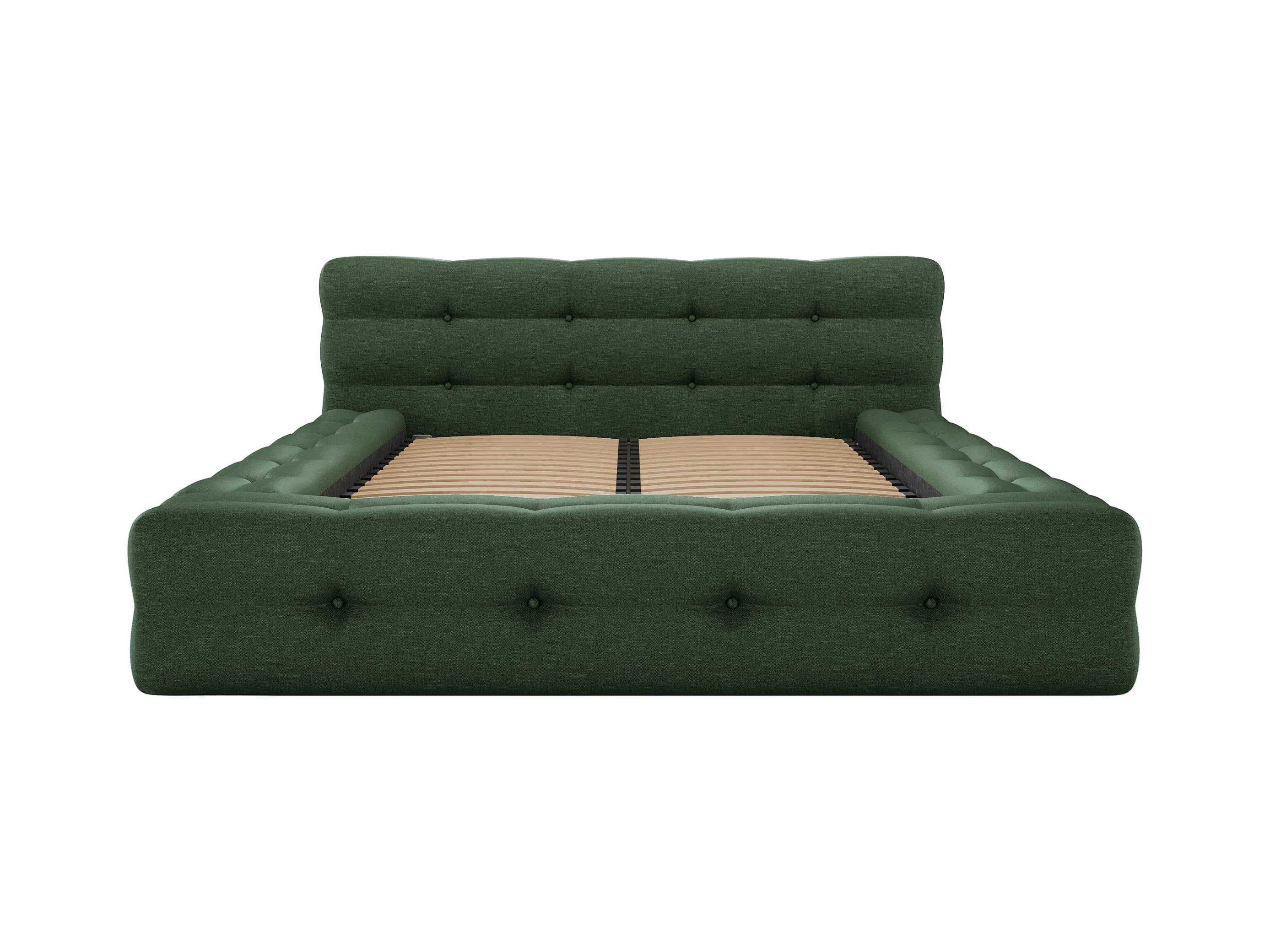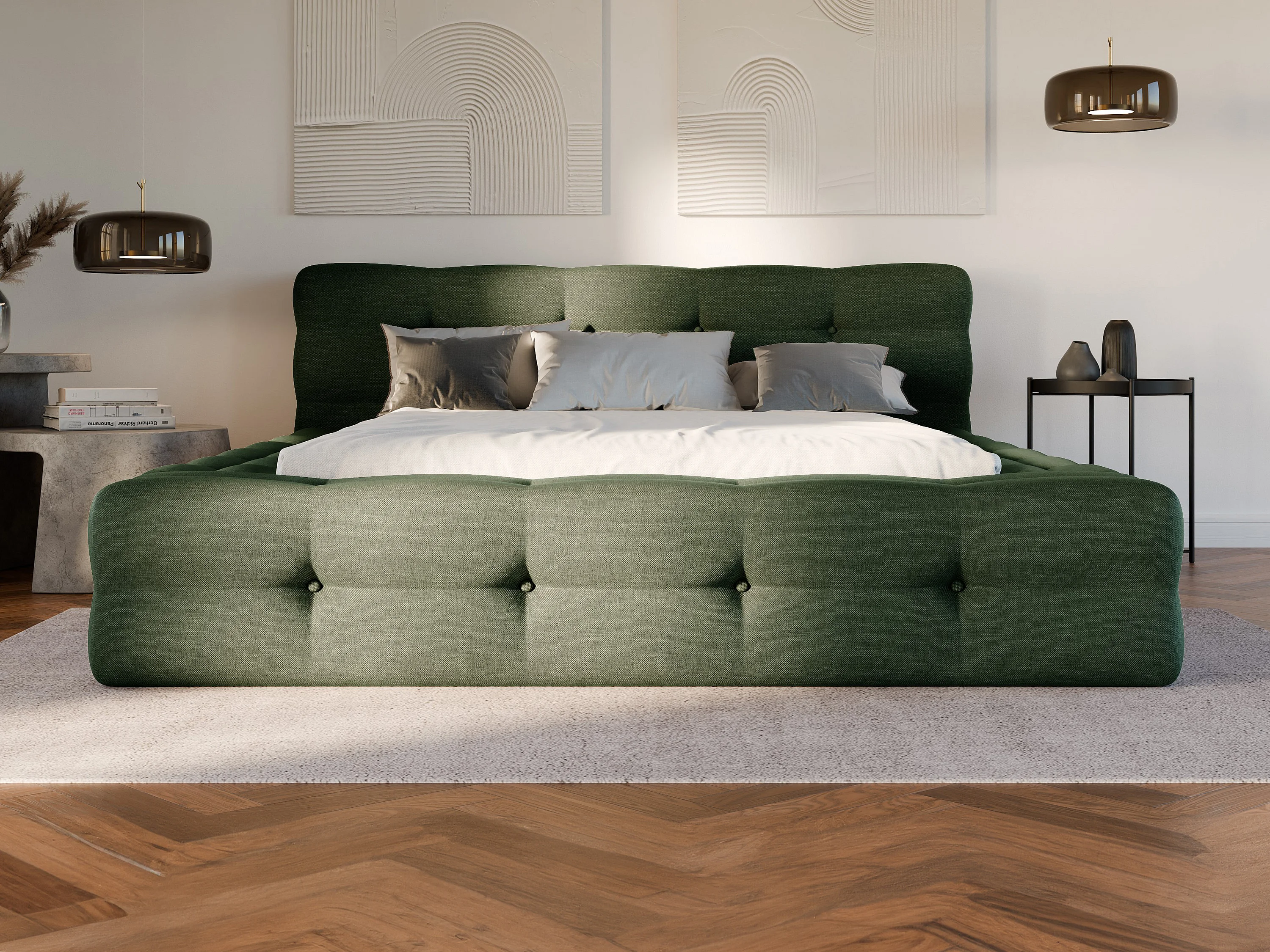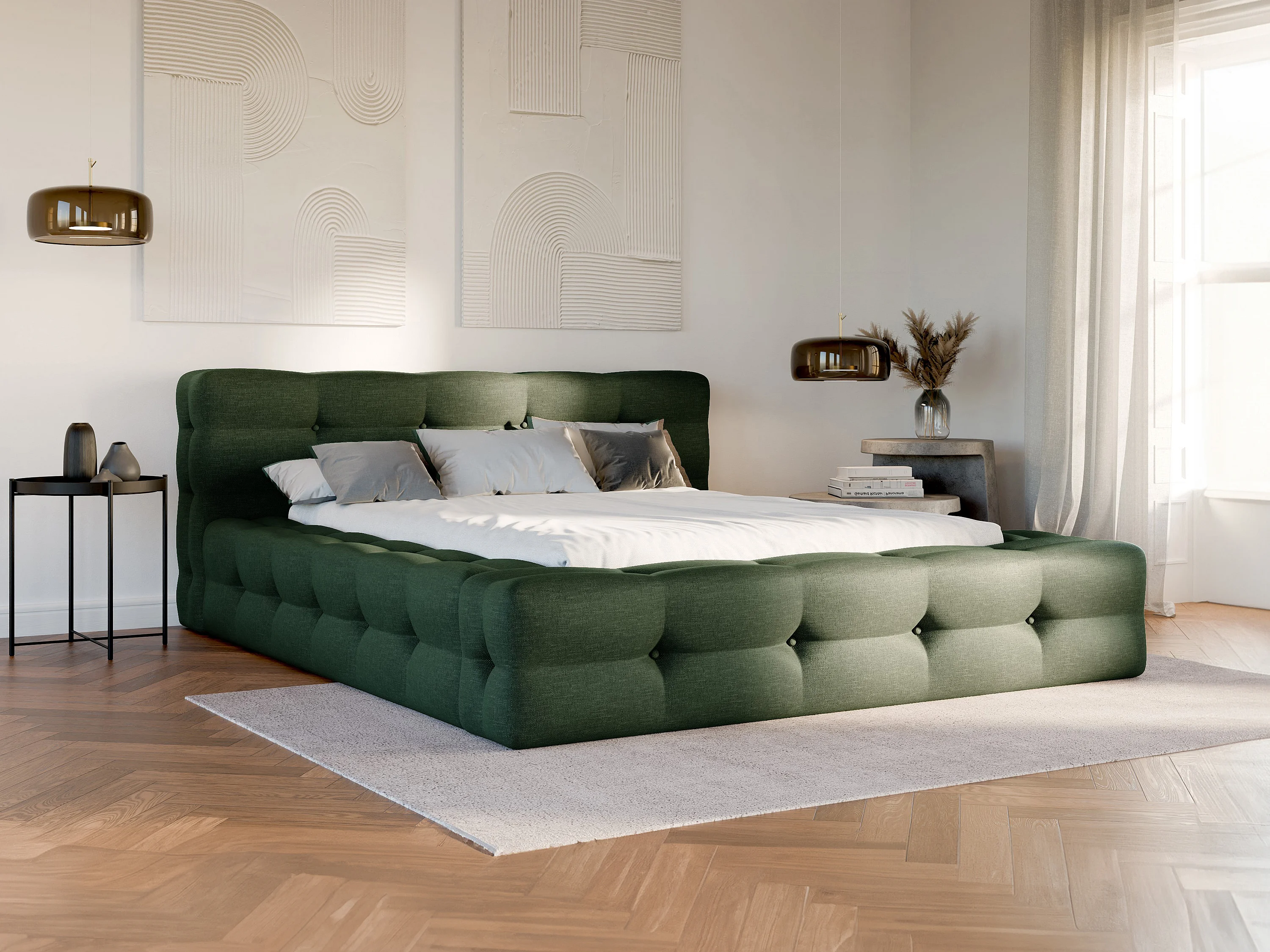 Lit capitonné 180 x 200 cm - Tissu chiné - Vert sapin - LERUCO de Pascal Morabito