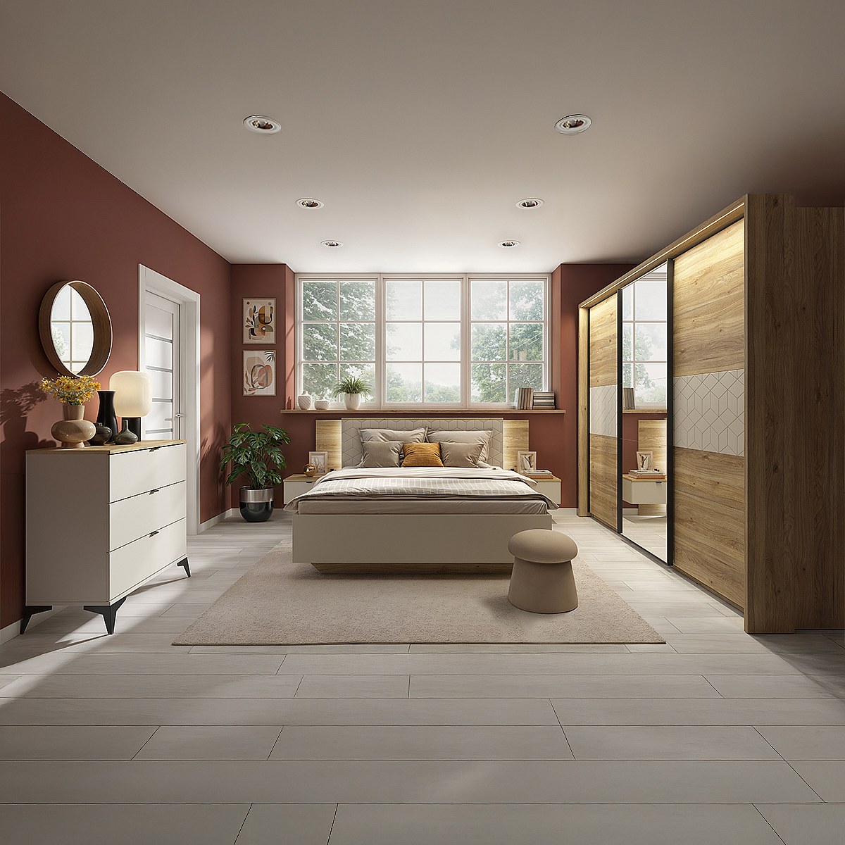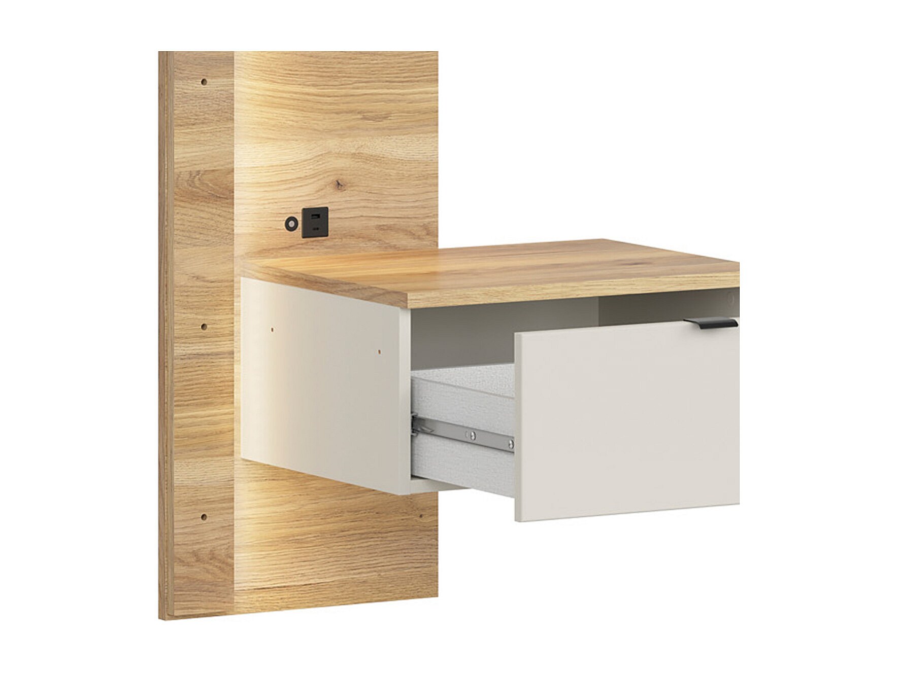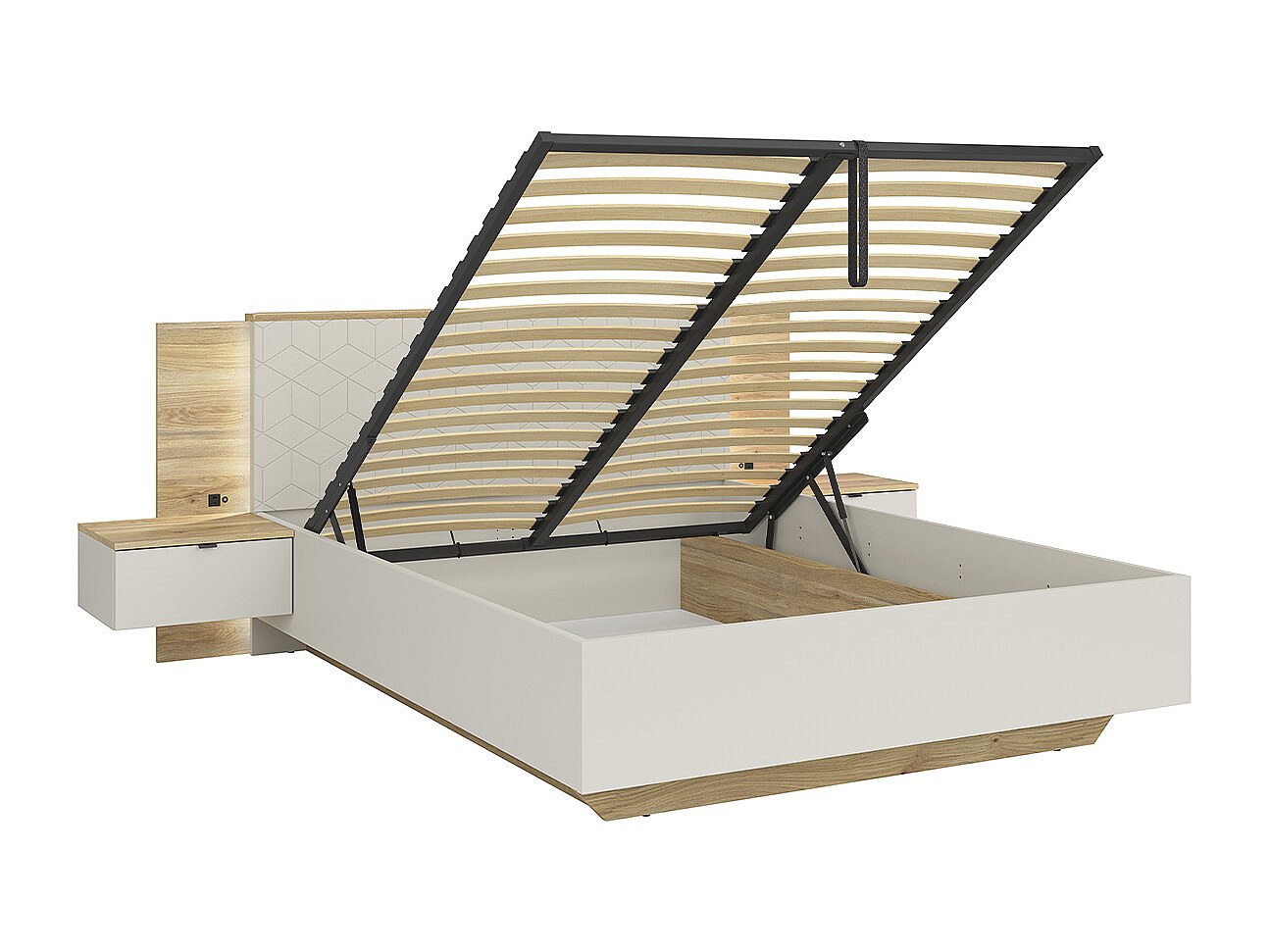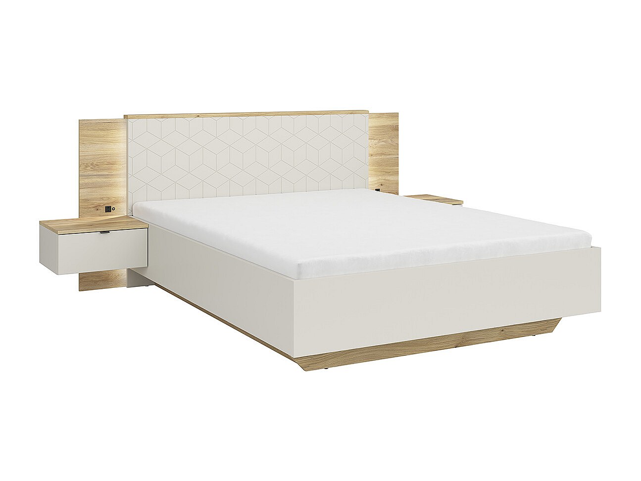 Lit coffre 160x200 sommier chevet LED et prise USB inclus Naya Cachemire