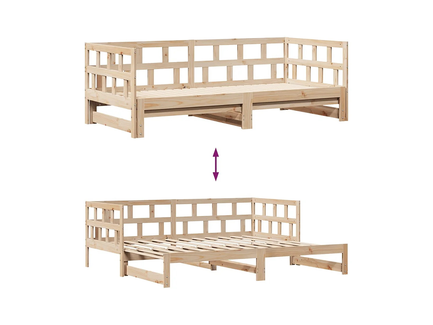 Lit de jour avec gigogne et tiroirs sans matelas 90x200 cm
