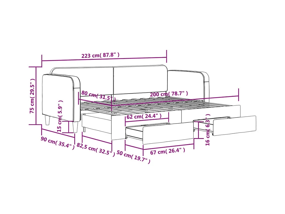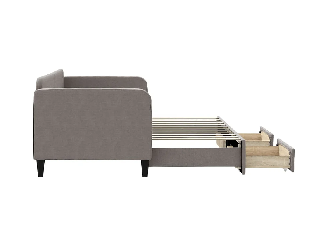 Lit de jour avec gigogne et tiroirs sans matelas taupe 80x200cm