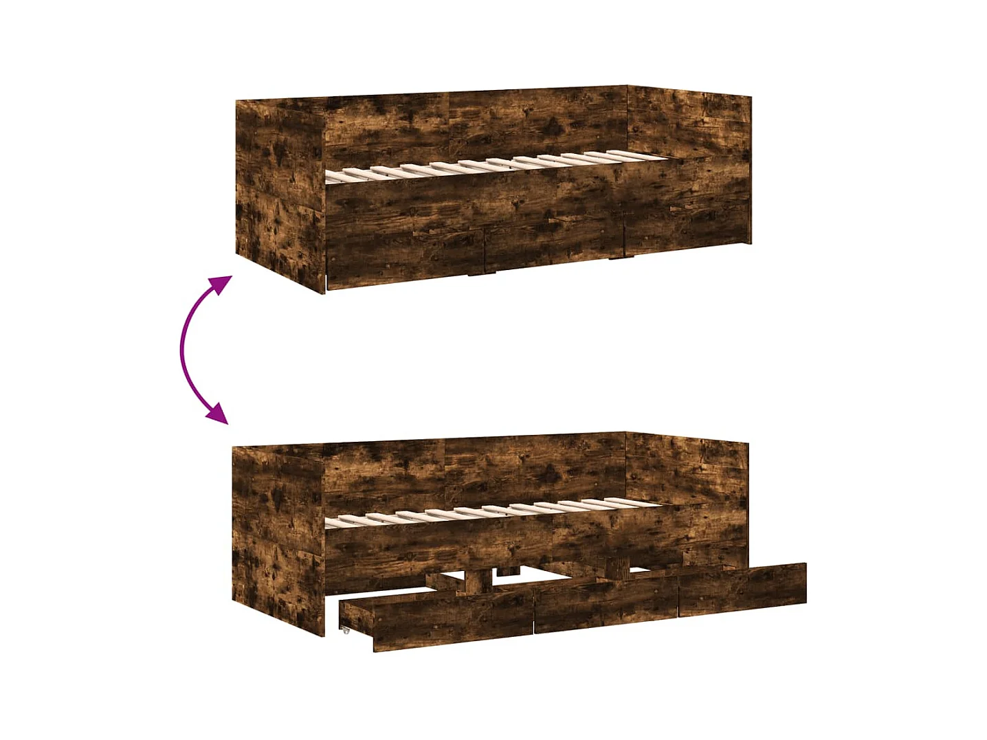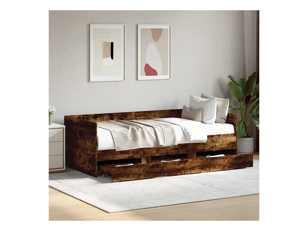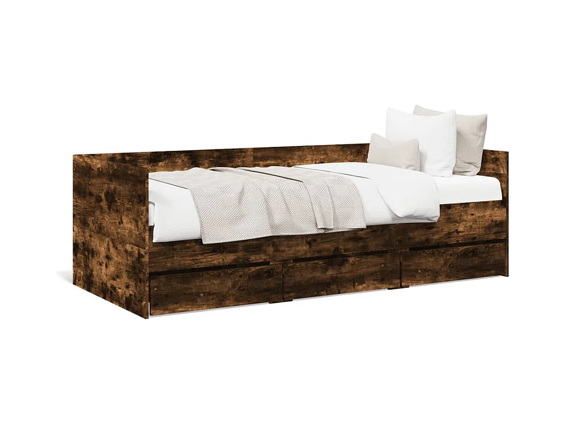 Lit de jour avec tiroirs sans matelas chêne fumé 75x190 cm