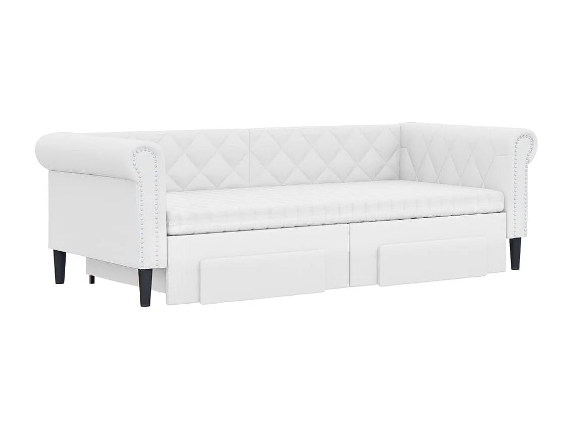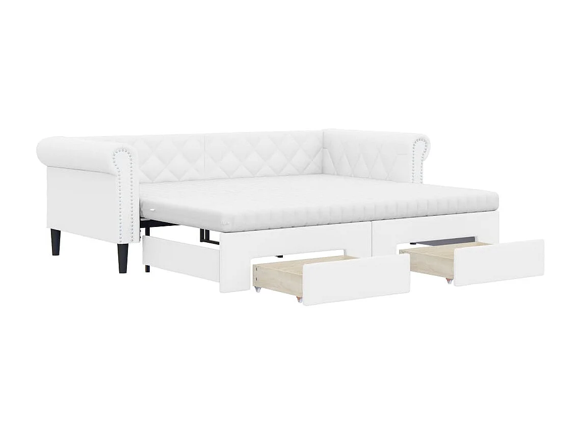Lit de jour et lit gigogne et tiroirs blanc 90x200cm similicuir