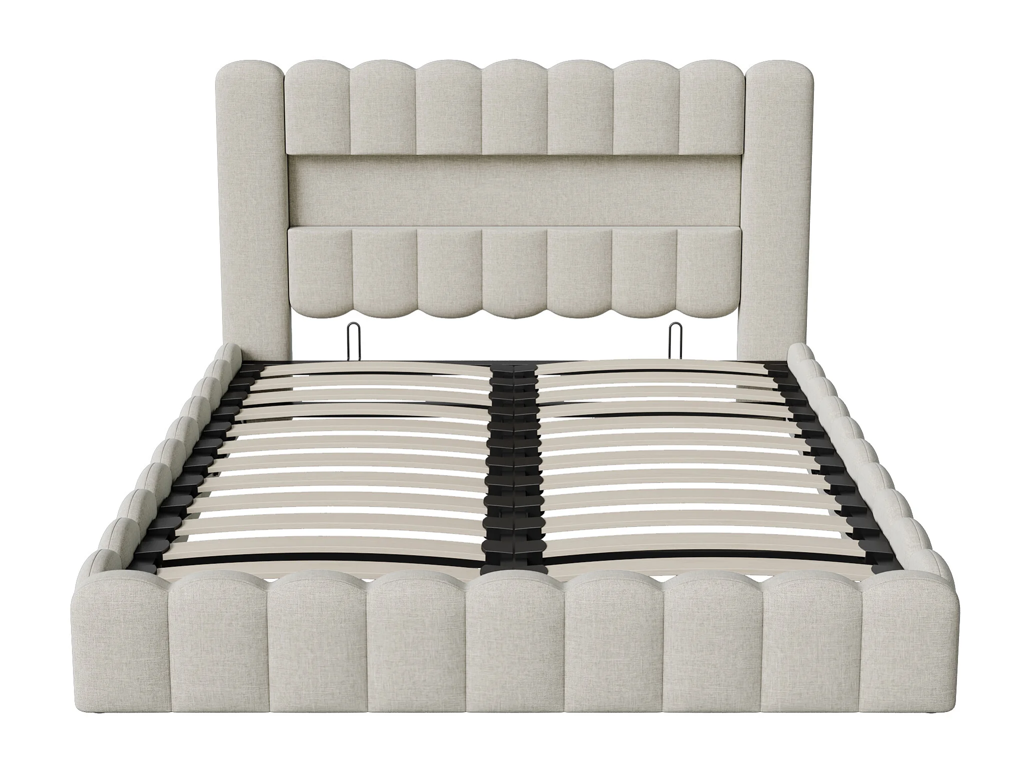 Lit double 160×200cm avec rangements, lit de souche avec éclairage LED,lin beige