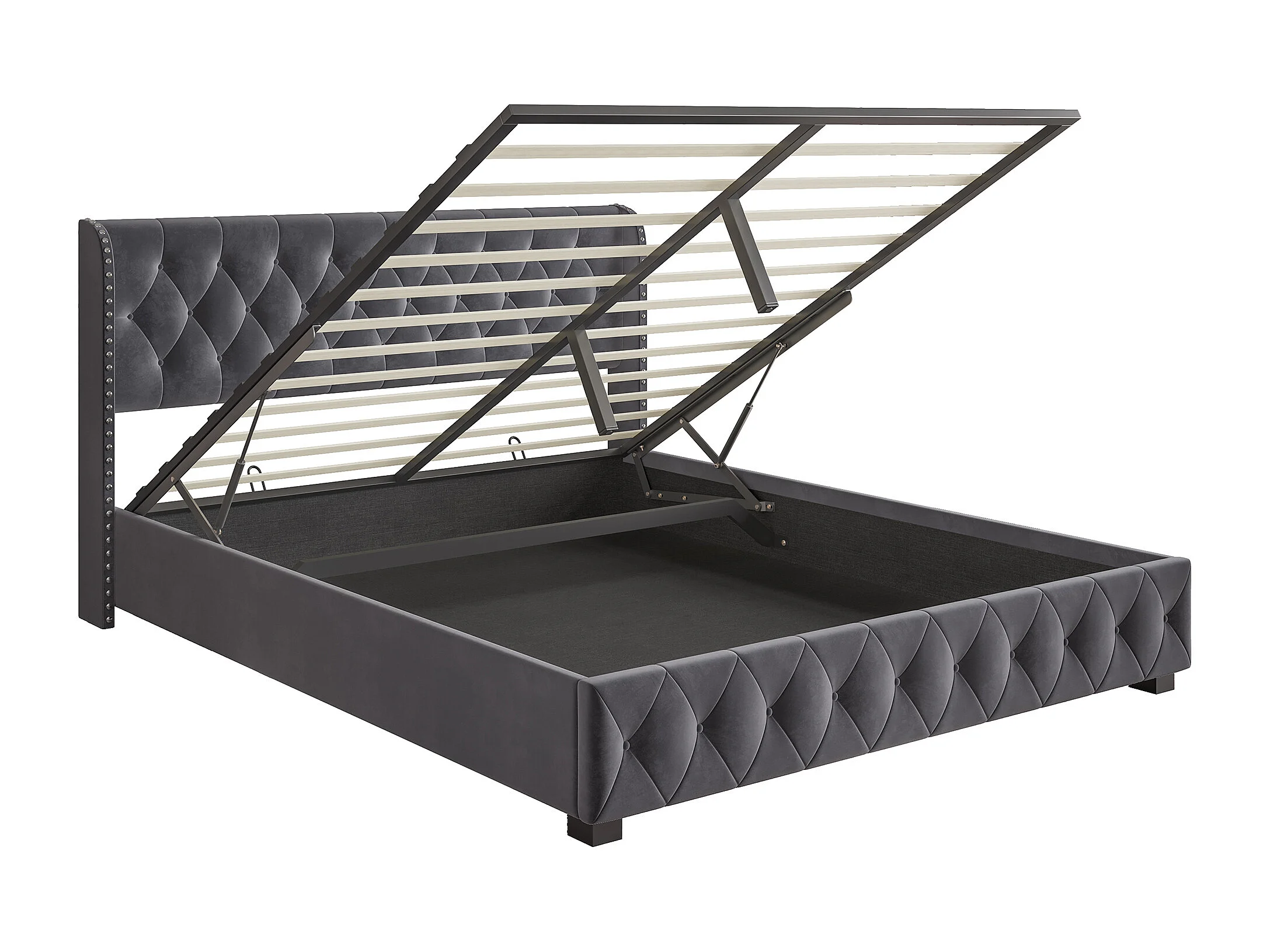 Lit coffre 140*200cm, tige pneumatique, avec fonction rangement, velours, gris foncé