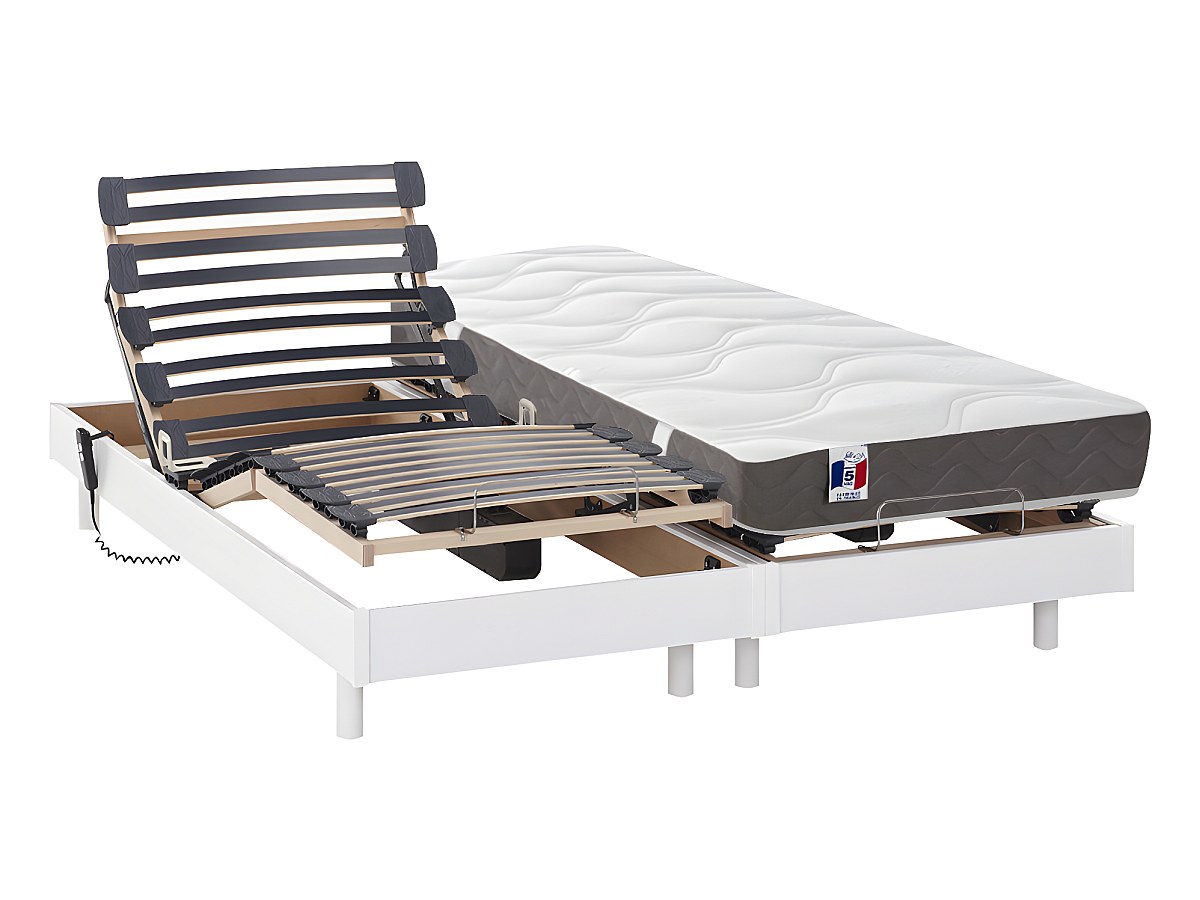 Lit électrique relaxation matelas 100% latex 5 zones ANANKE de DREAMEA - blanc - 2 x 80 x 200 cm