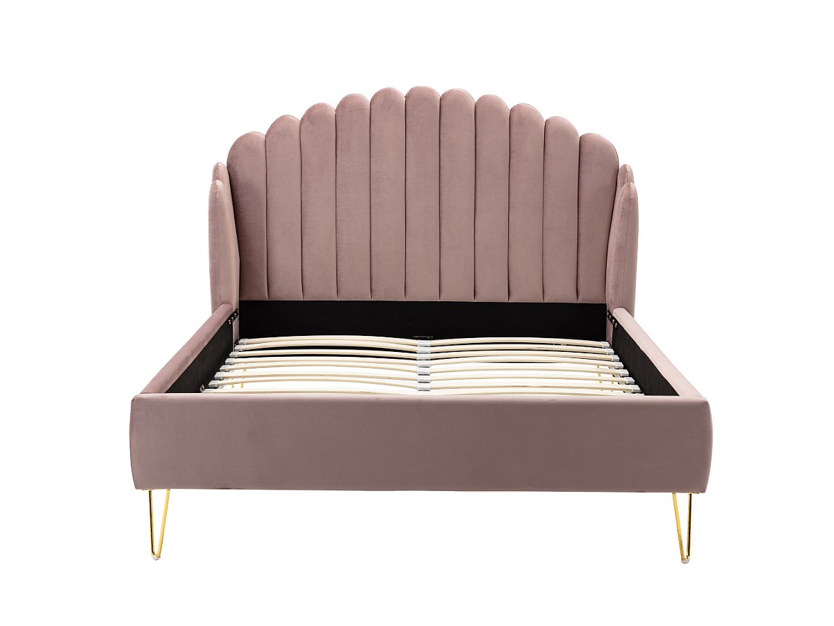 Lit EMMA avec tête de lit ondulée - 140 x 190 cm - Velours - Vieux rose