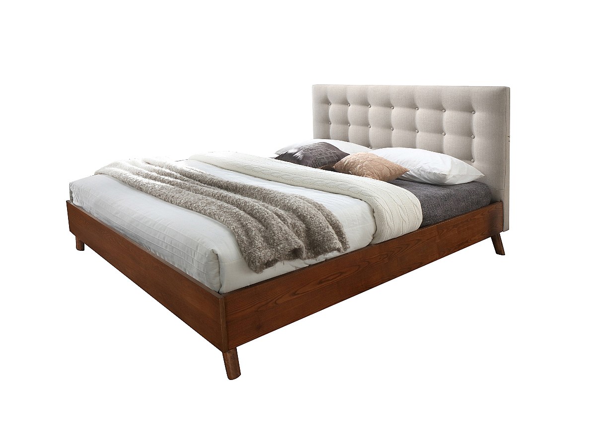 - Coloris: Tissu beige ou gris et bois coloris noyer