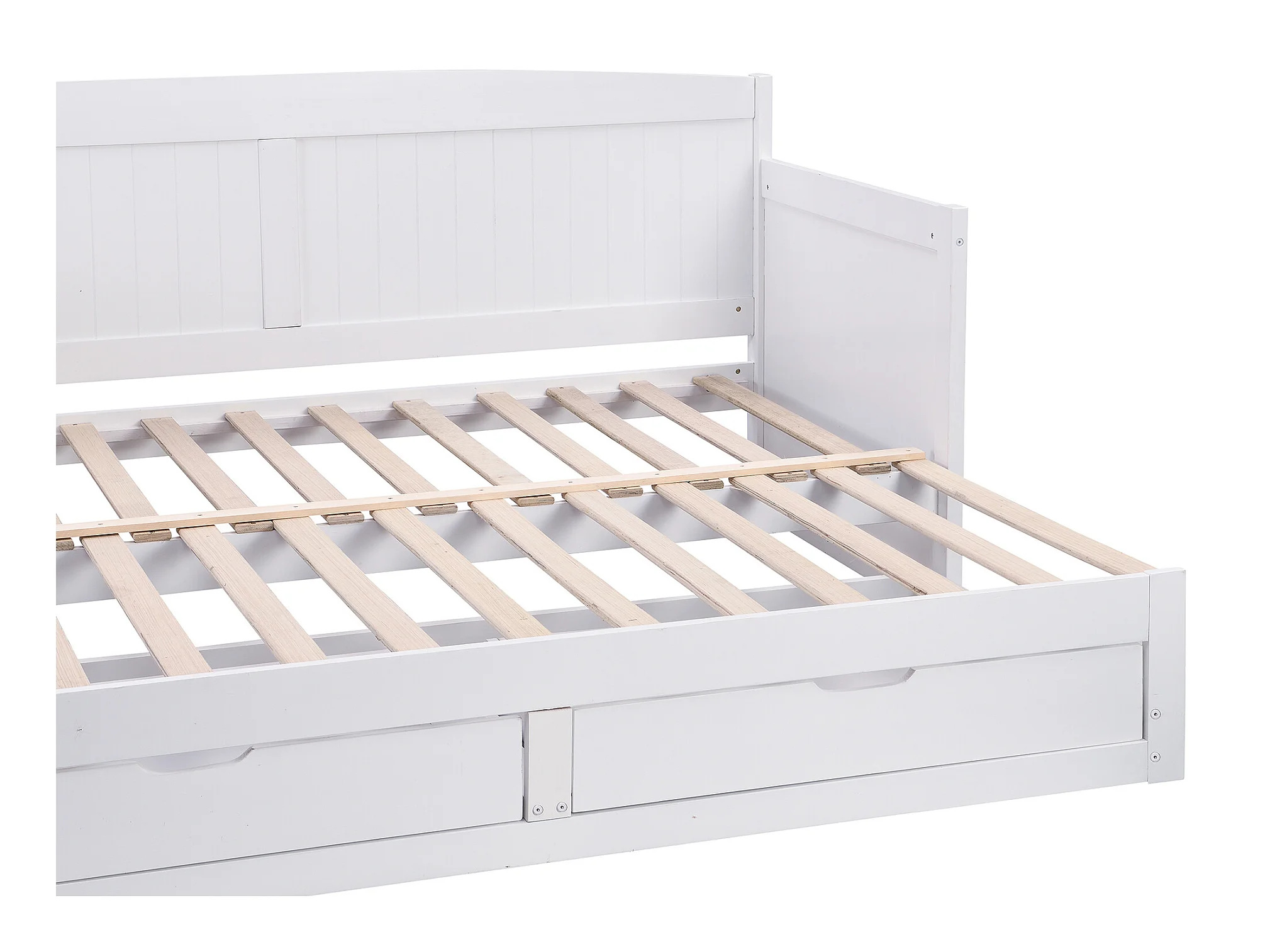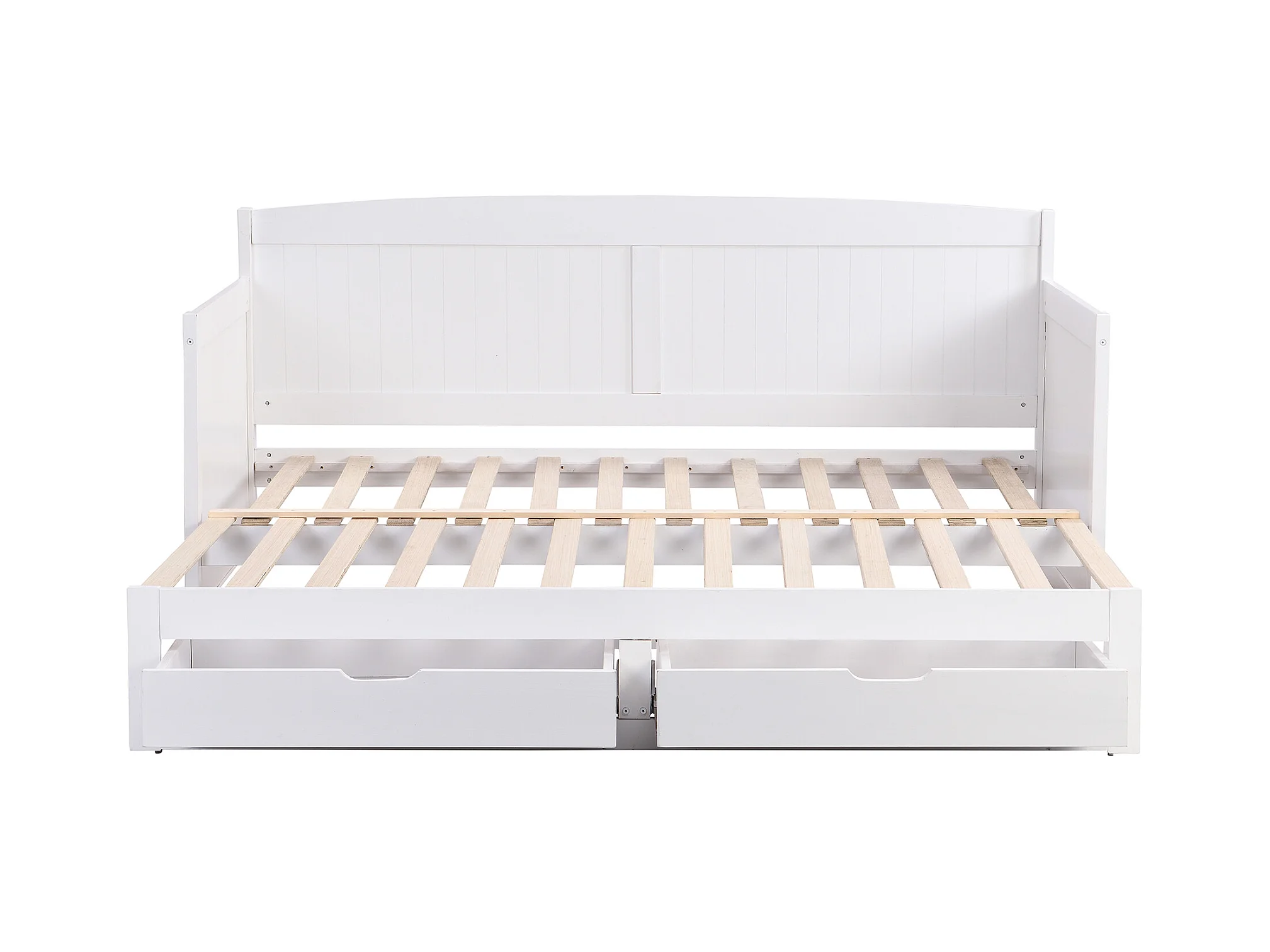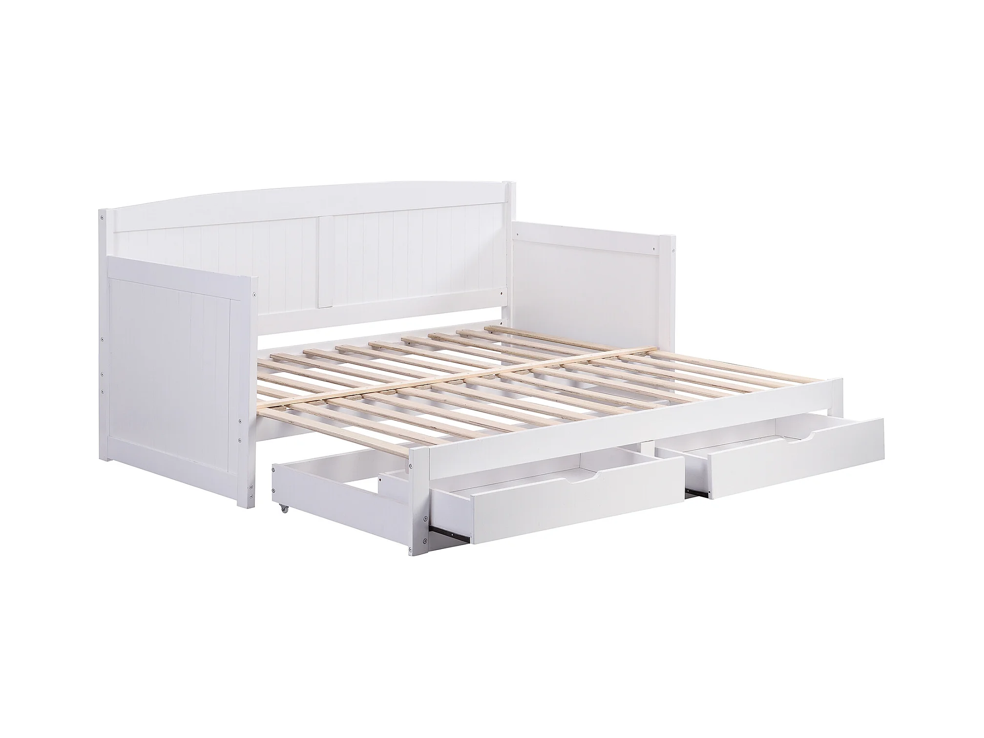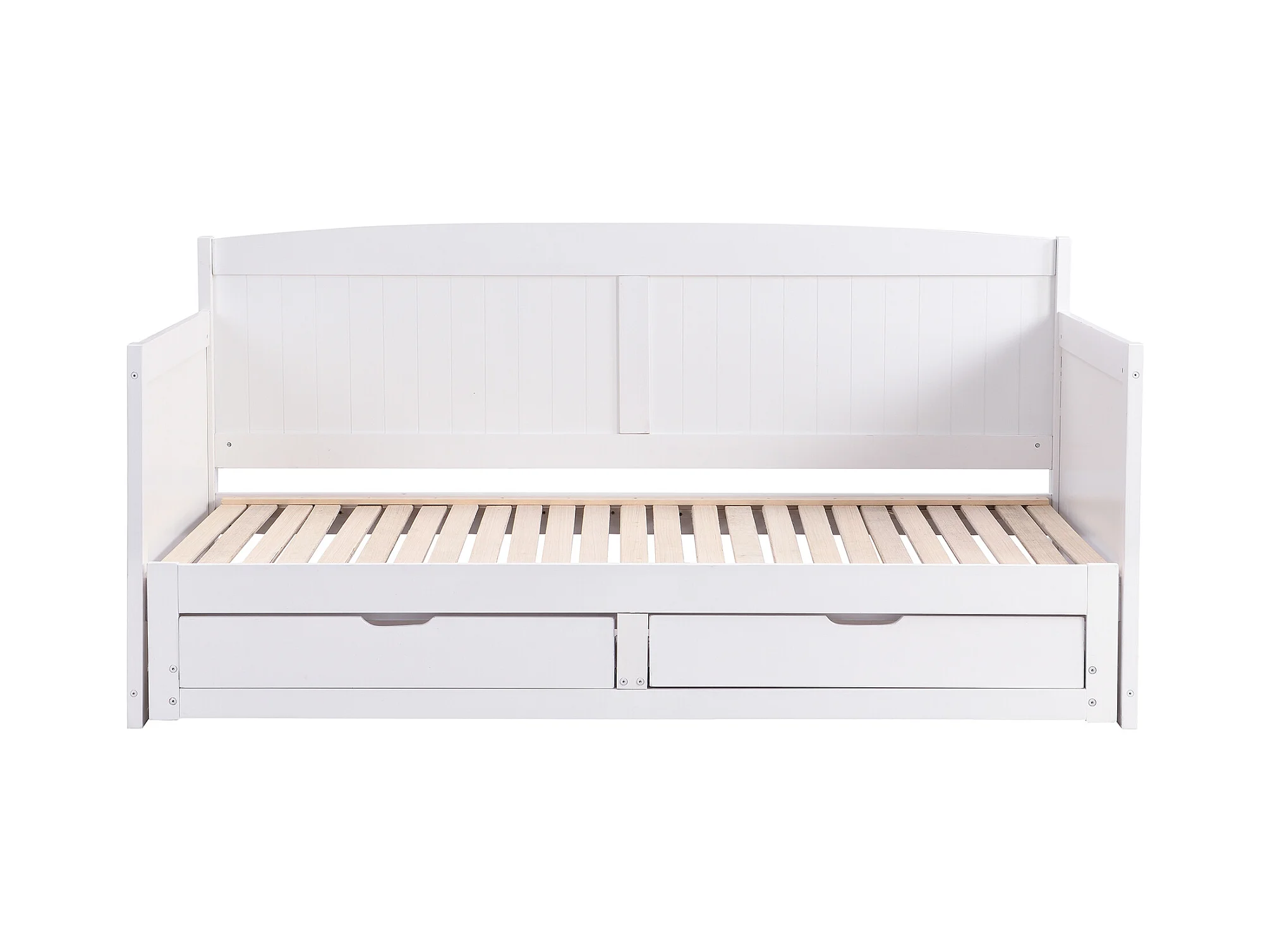 Lit gigogne banquette 90 x 190 ou 180 x 190 cm - Avec sommier peigne et tiroirs - Pin et MDF - Blanc - DINIVA
