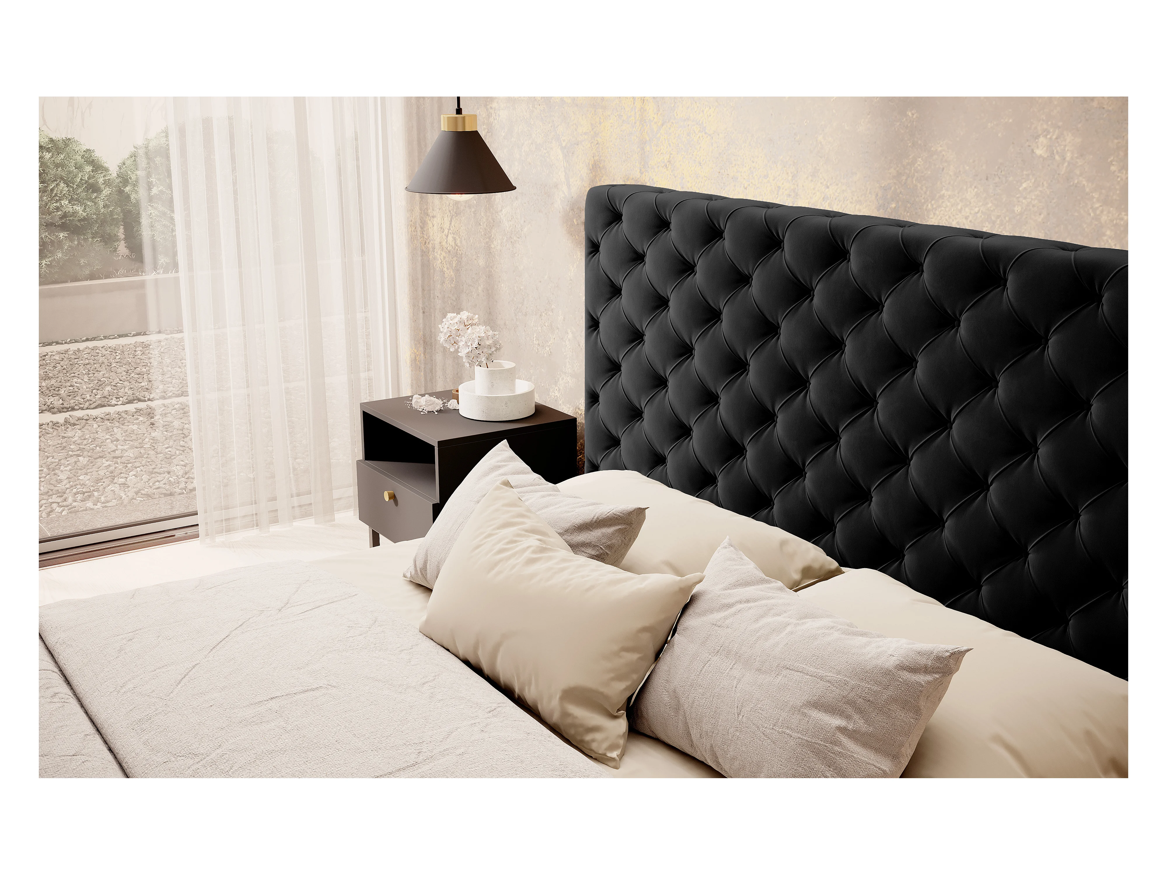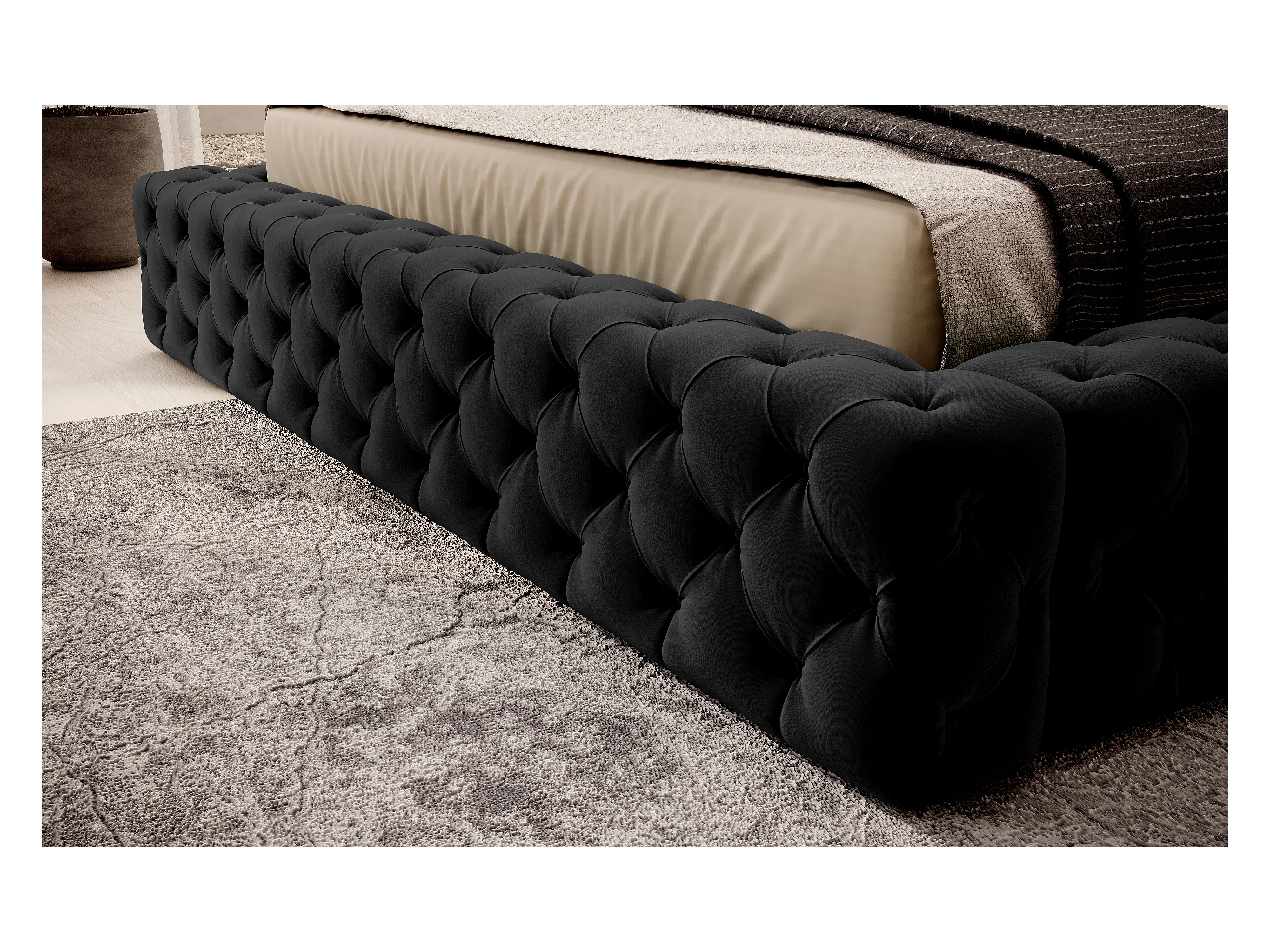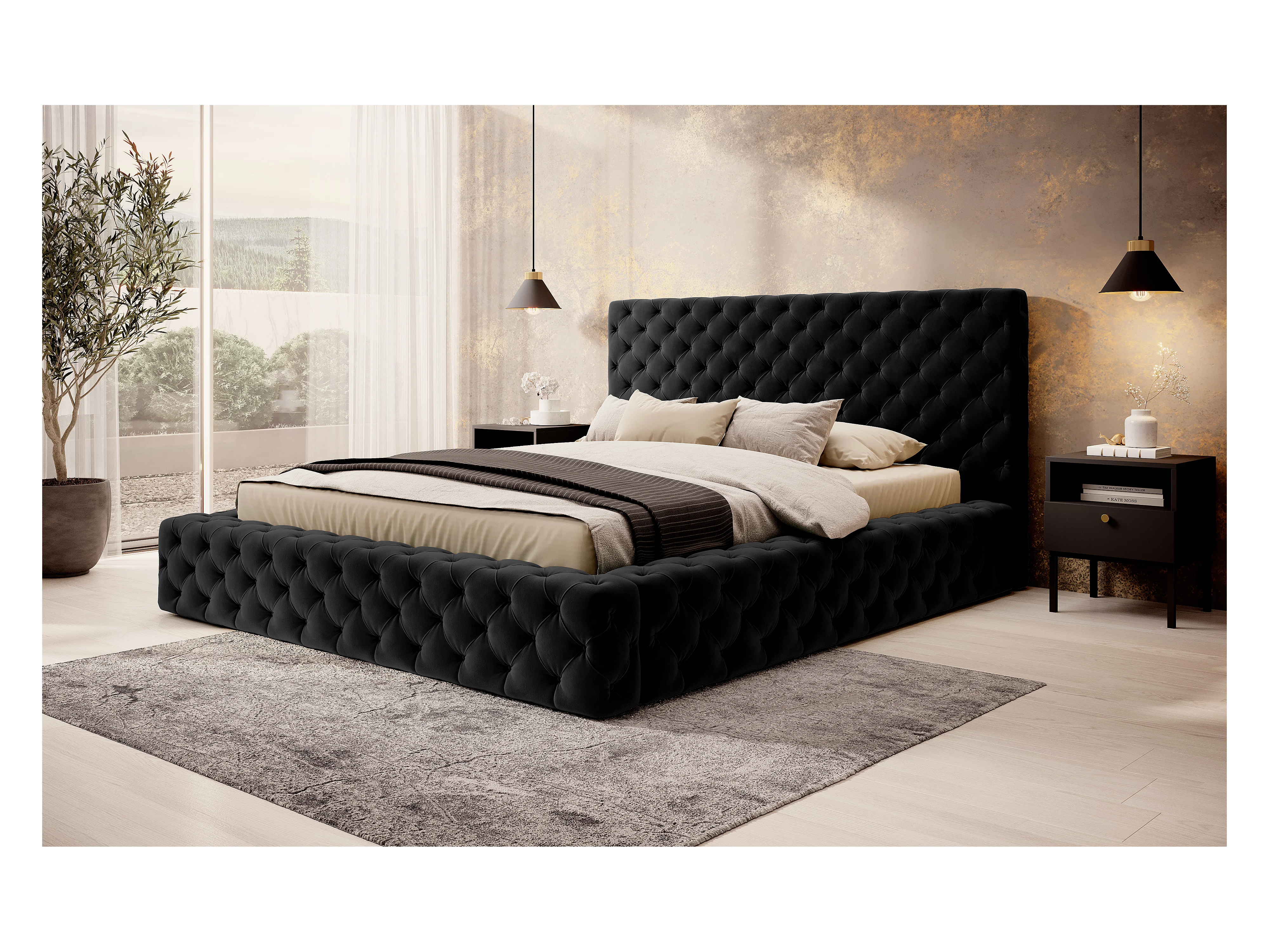 Lit King M (160x200)/Tissu-Noir/En stock