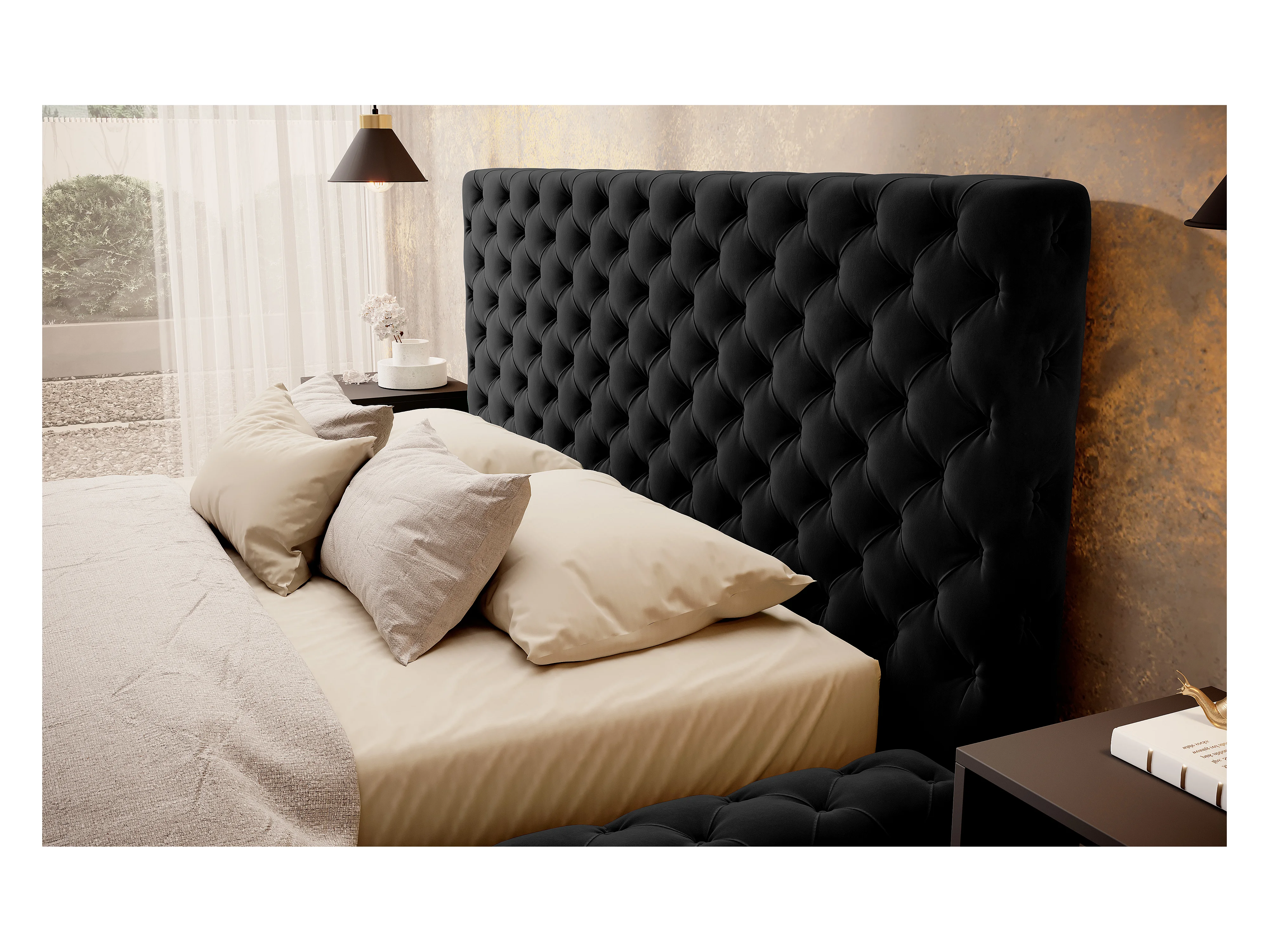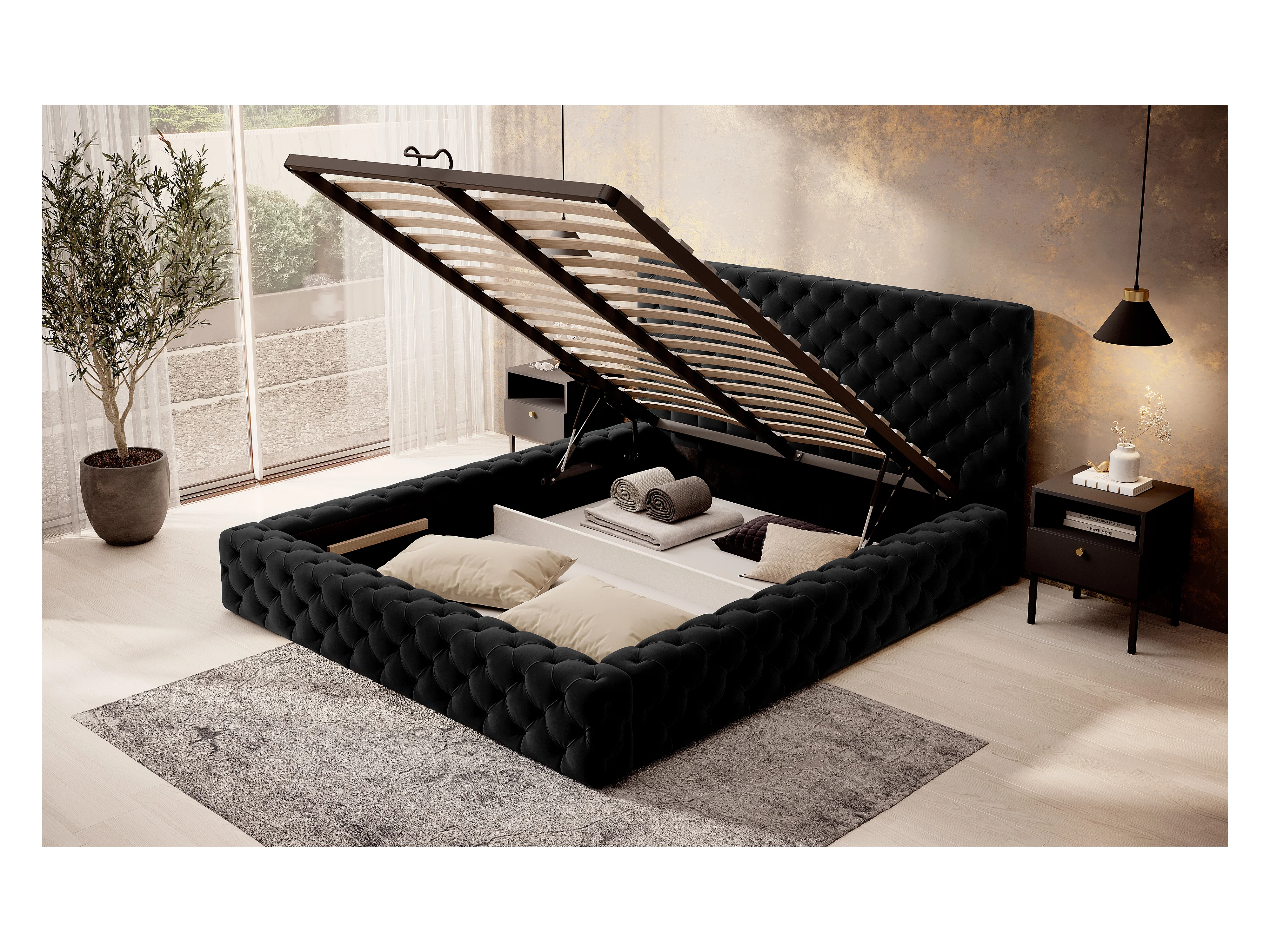Lit King M (160x200)/Tissu/Noir