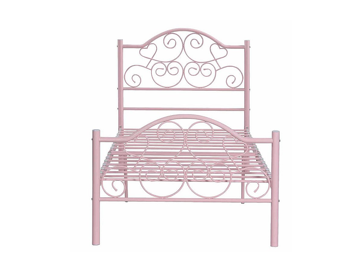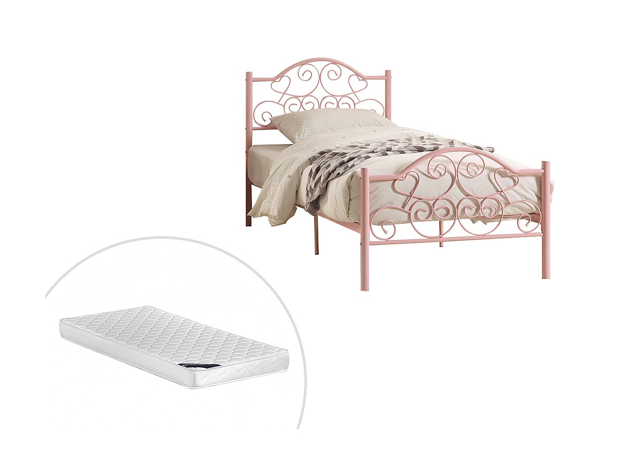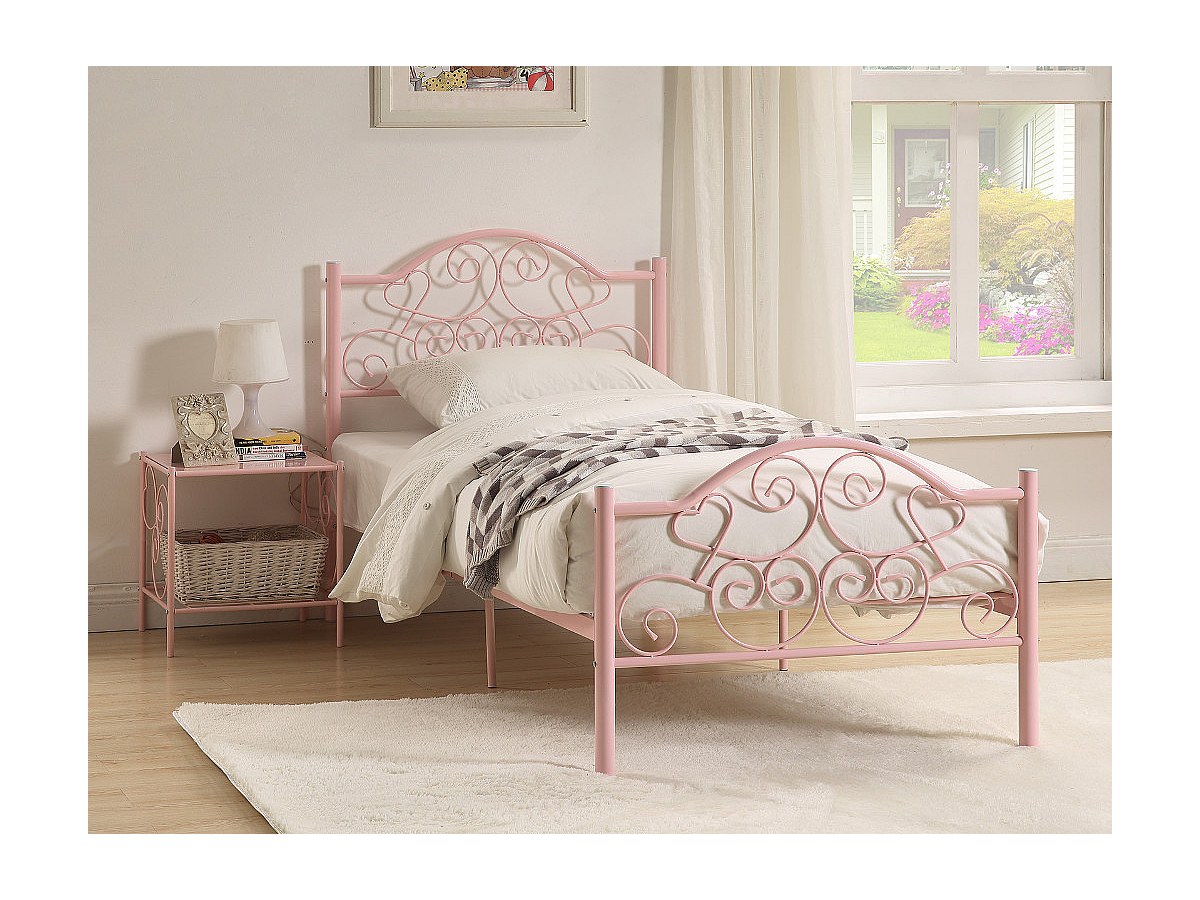 Lit LEYNA - 90 x 190 cm - Métal - Rose + matelas