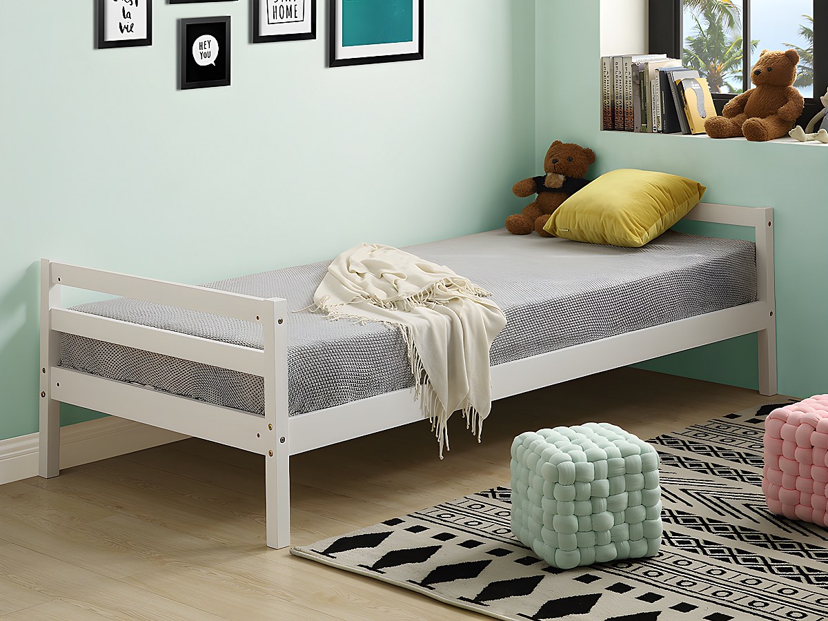 Lit LIAM - 90 x 190 cm - Pin - Blanc