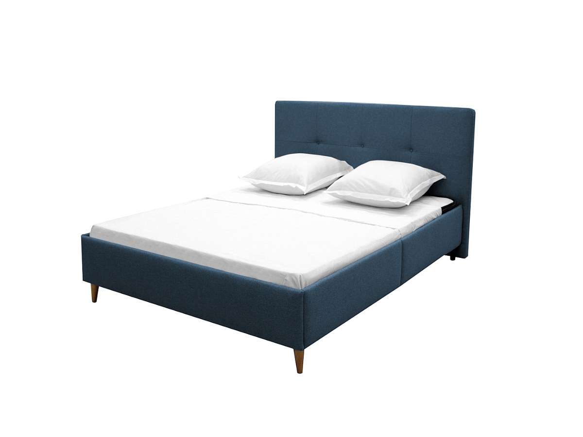 Lit LUCAS tête de lit capitonnée - 140 x 190 cm - Tissu bleu