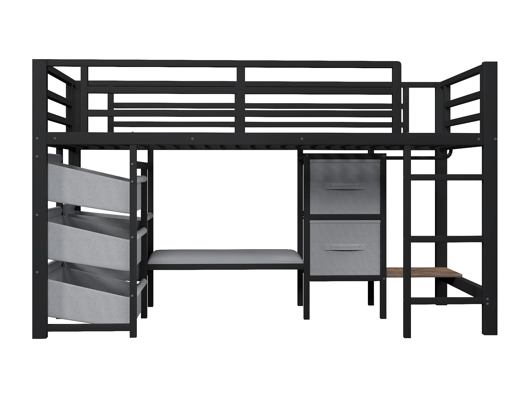 Lit mezzanine 90x200cm - avec échelle de rangement - avec barrières - noir (sans matelas)