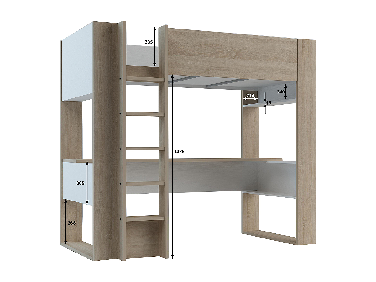 Lit mezzanine NOAH avec bureau et rangements intégrés - 90 x 200 cm - Coloris : Chêne