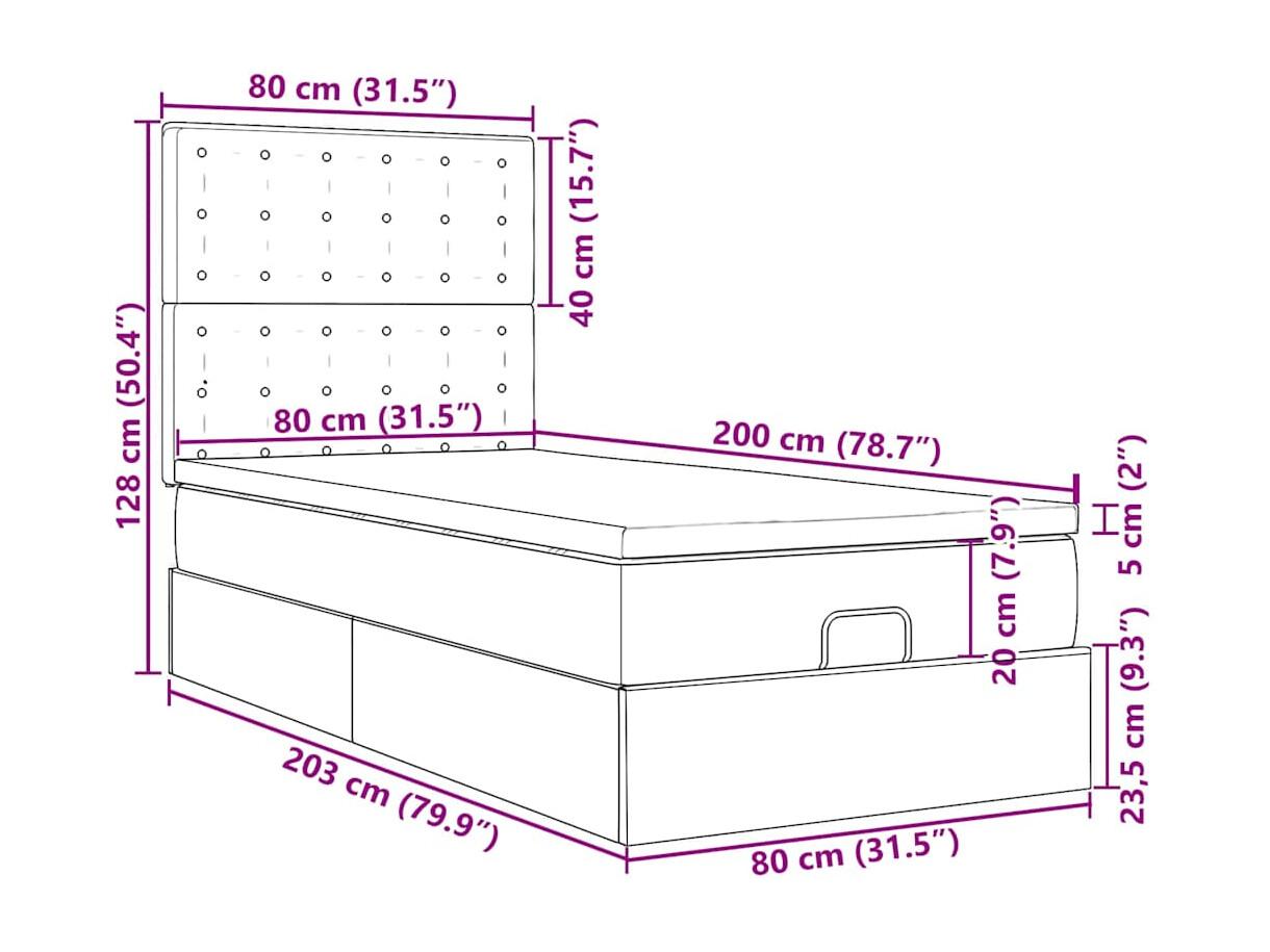 Cadre de lit ottoman avec matelas gris foncé 80x200 cm tissu