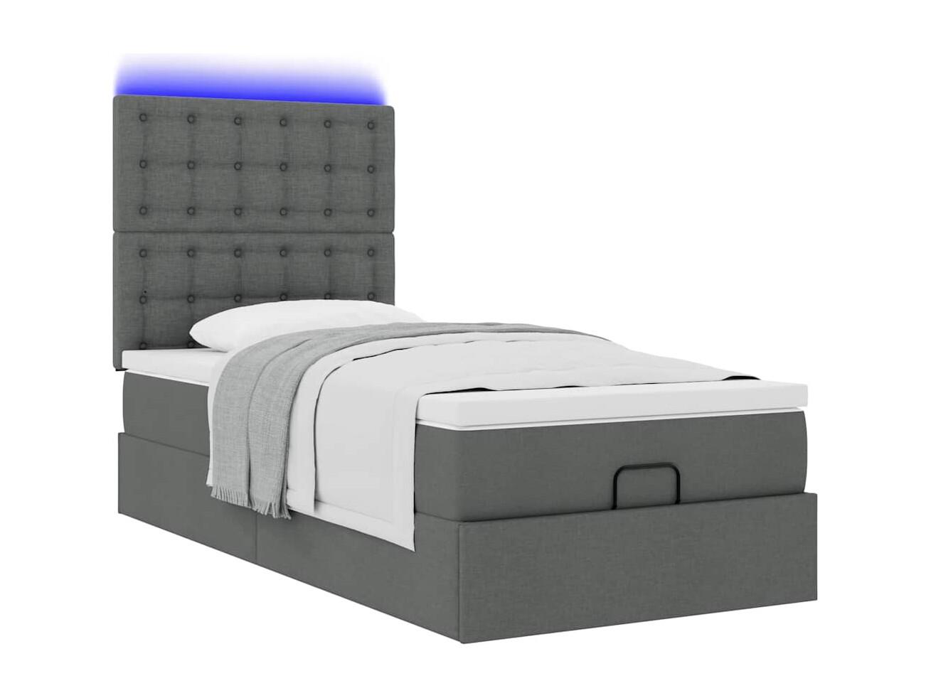 Lit ottoman avec matelas et LED Gris foncé 80x200cm tissu