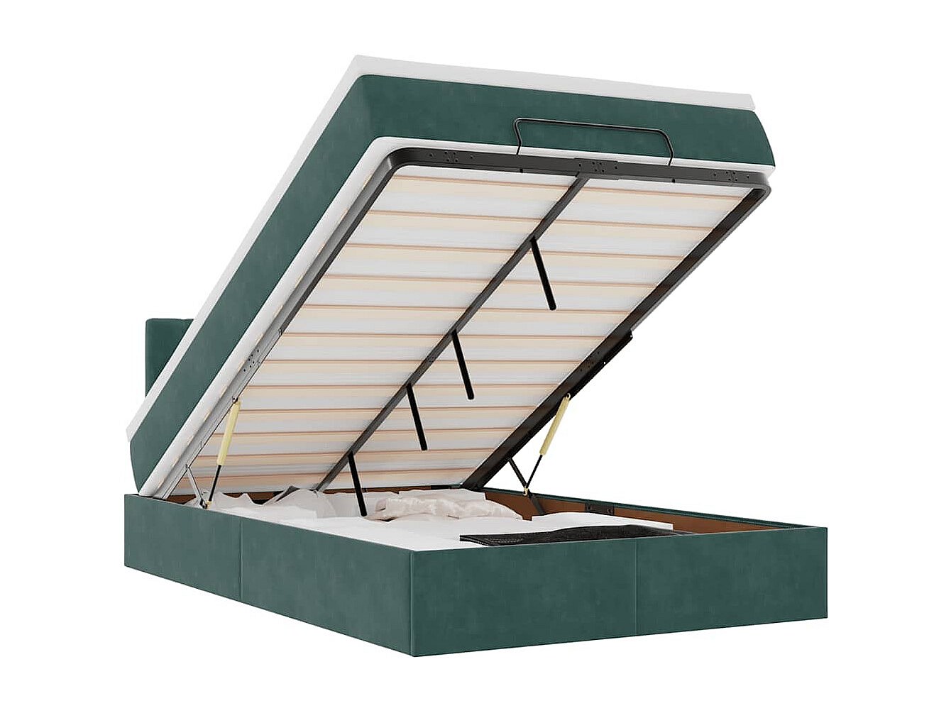 Cadre de lit ottoman sans matelas vert foncé 120x190 cm velours