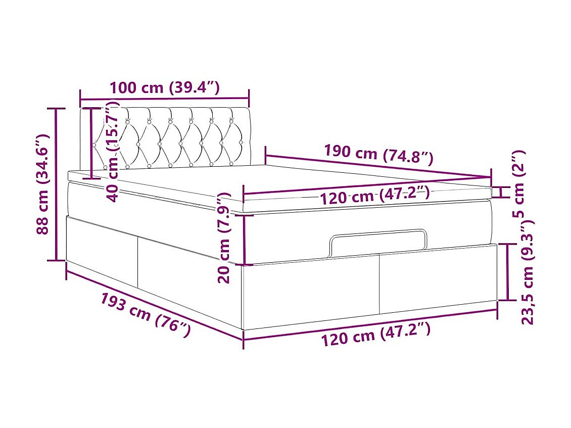 Cadre de lit ottoman avec matelas vert foncé 120x190 cm velours
