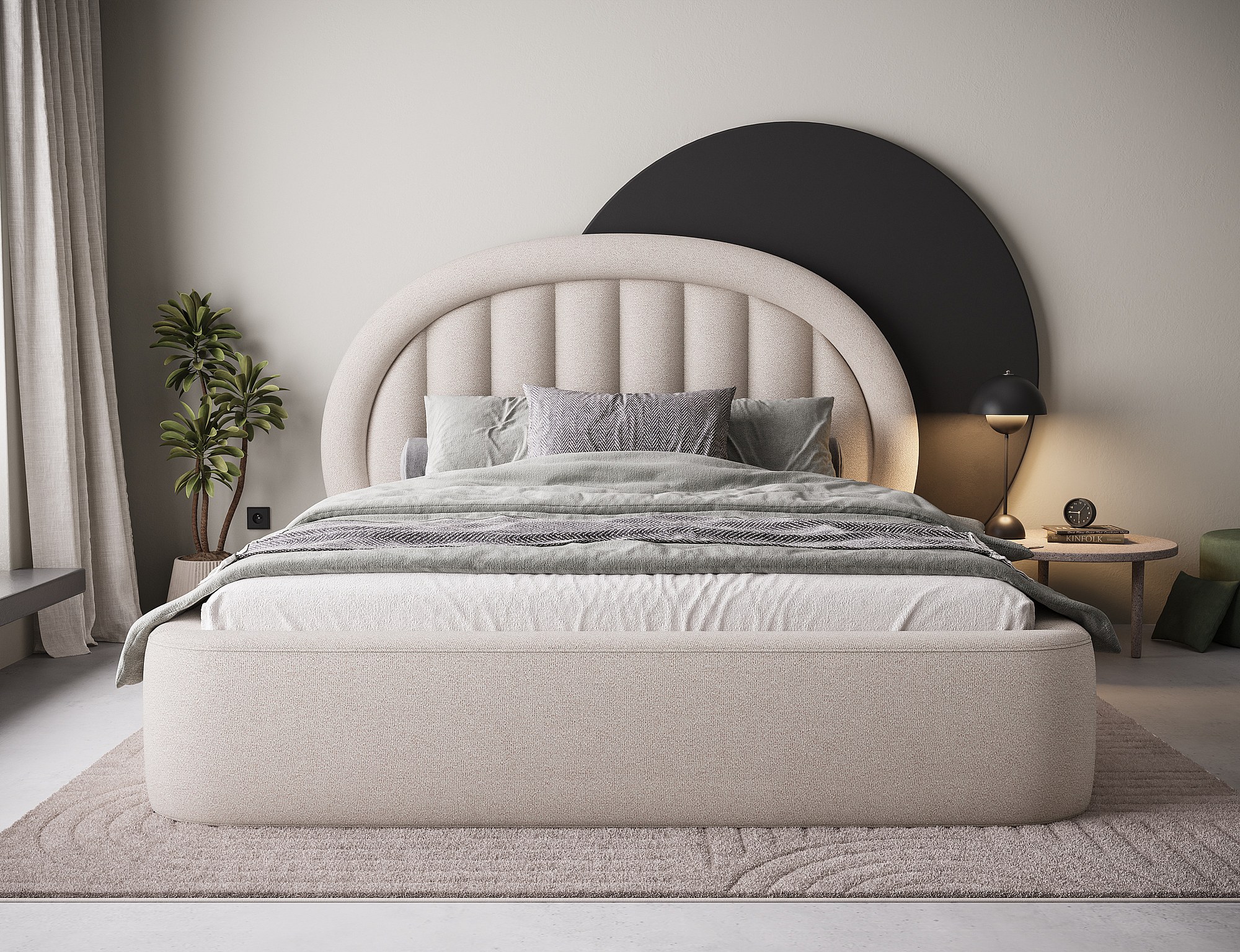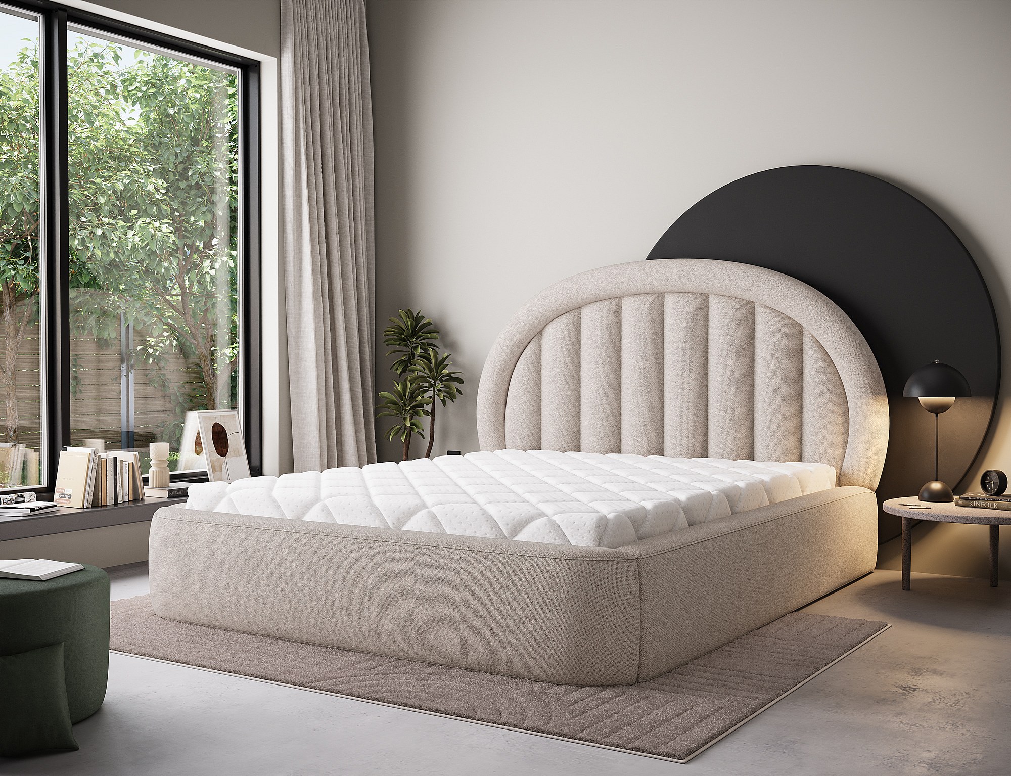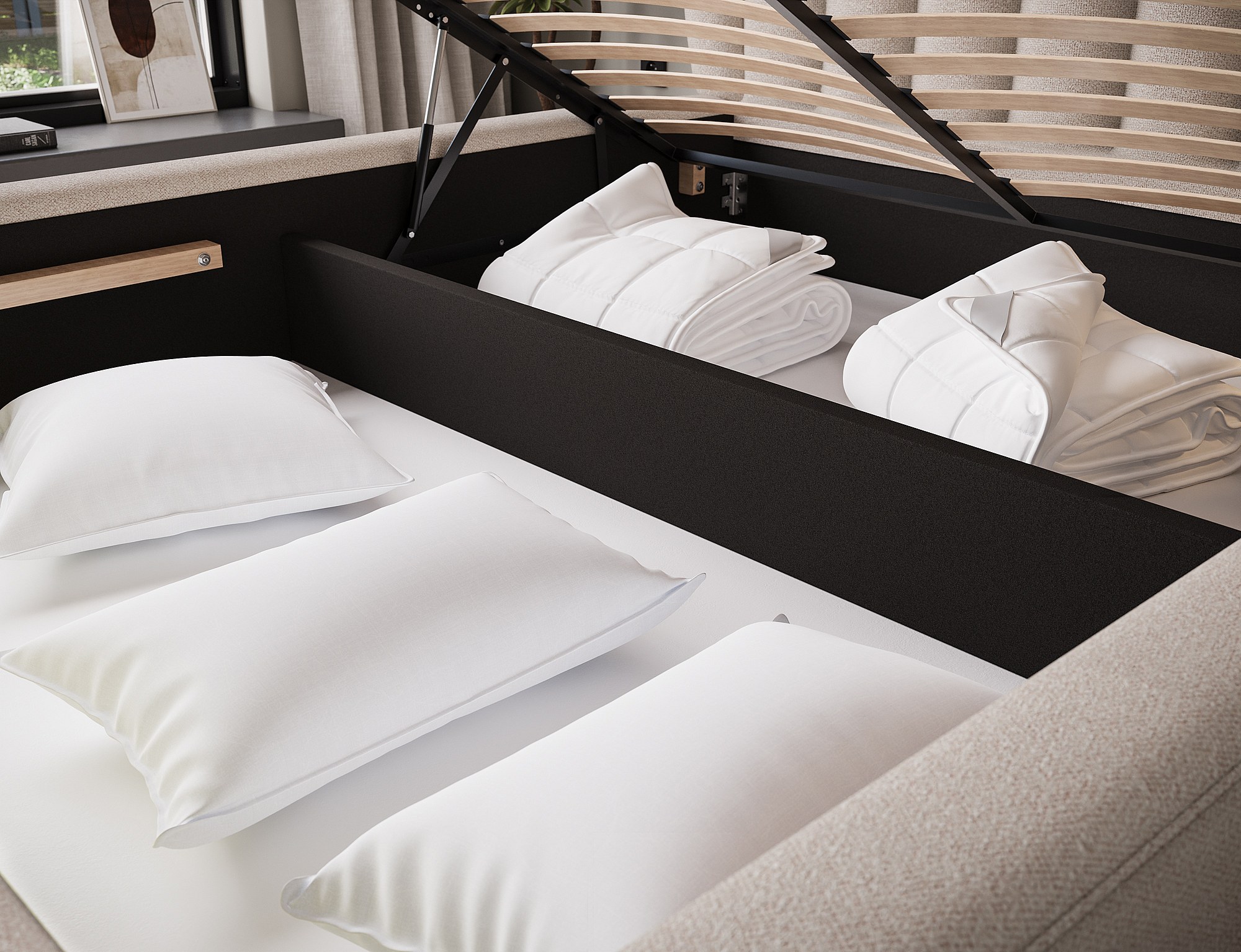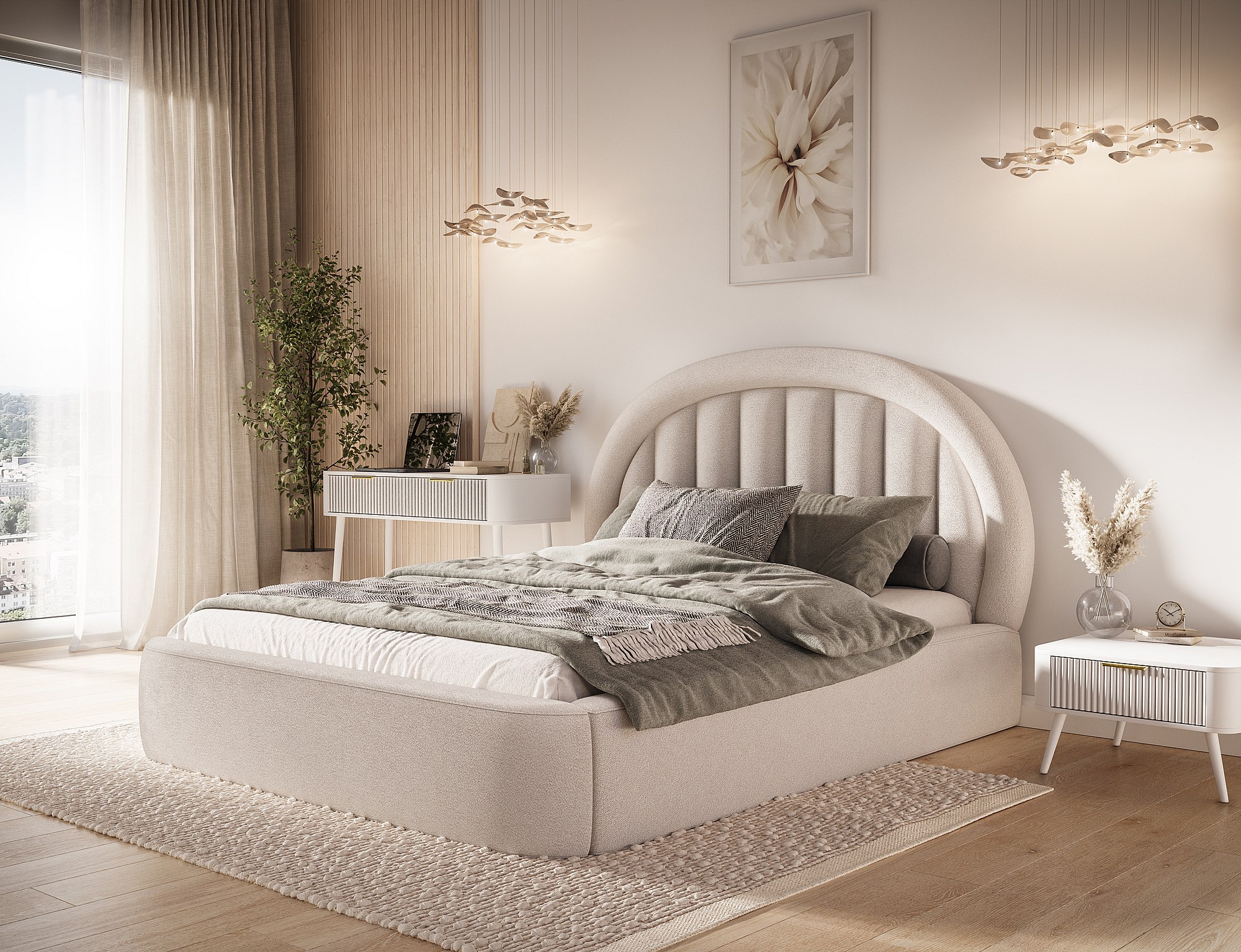 Lit Pella/160x200/sommier à lattes/revêtement tissu/Beige