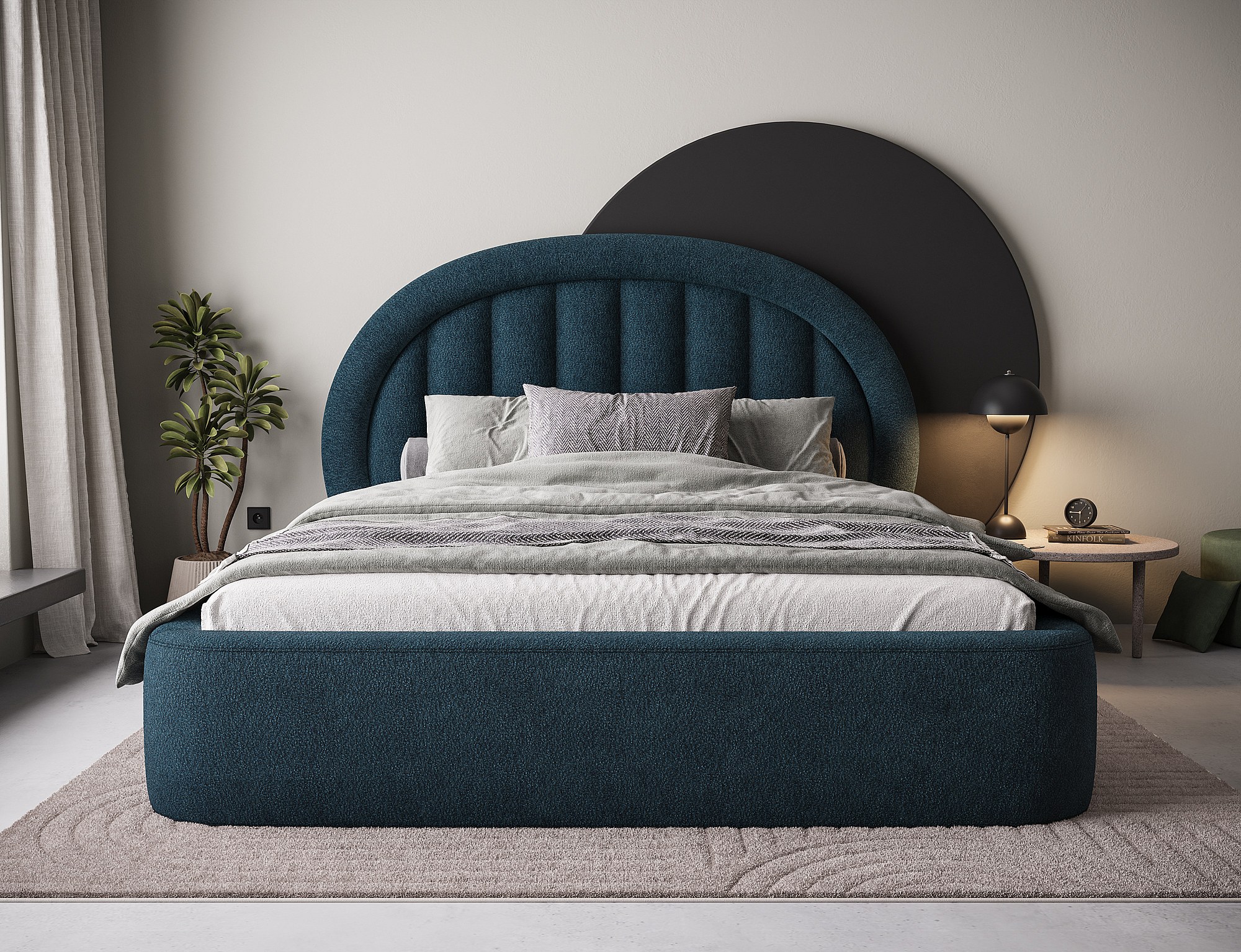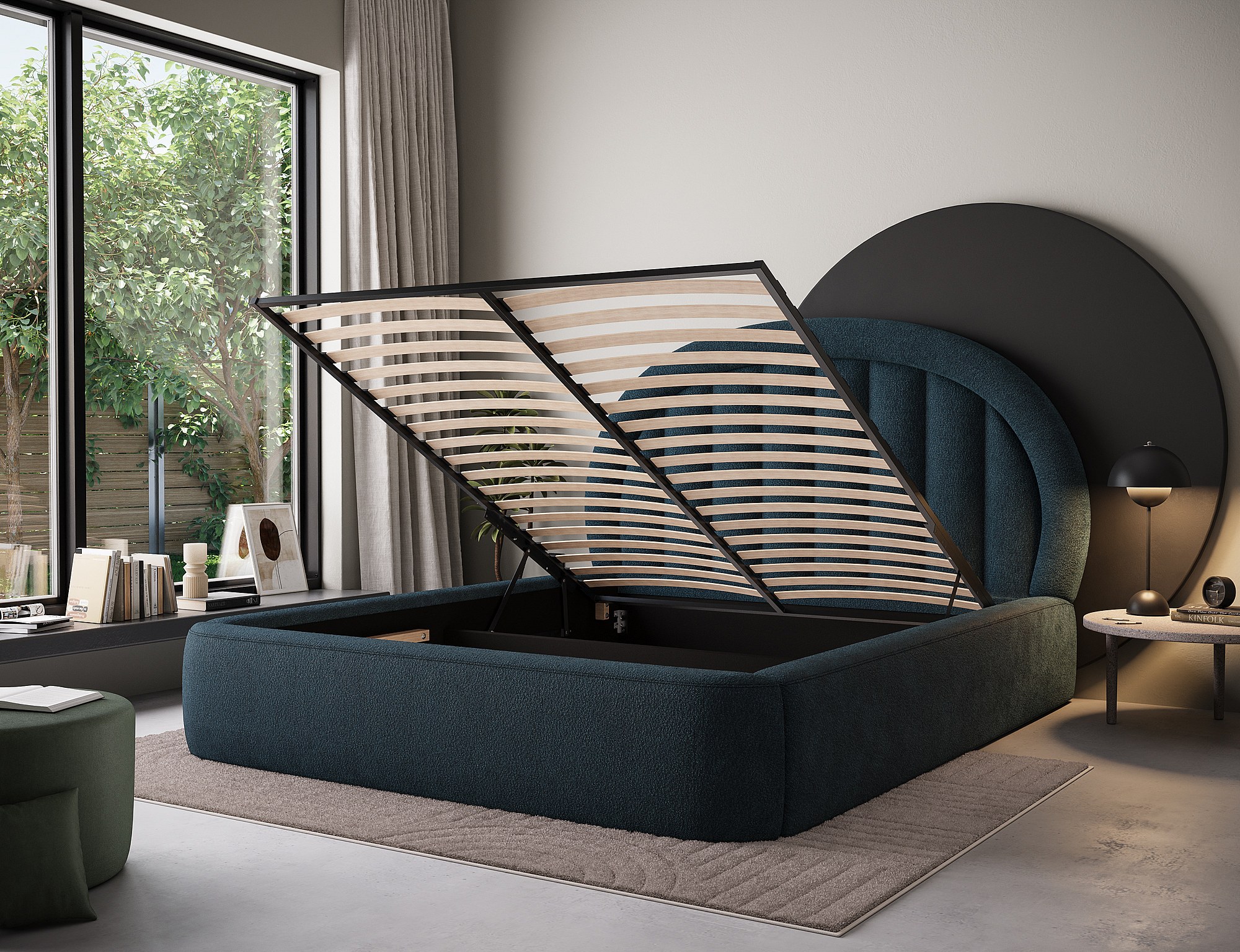 Lit Pella/160x200/sommier à lattes/revêtement tissu/Bleu