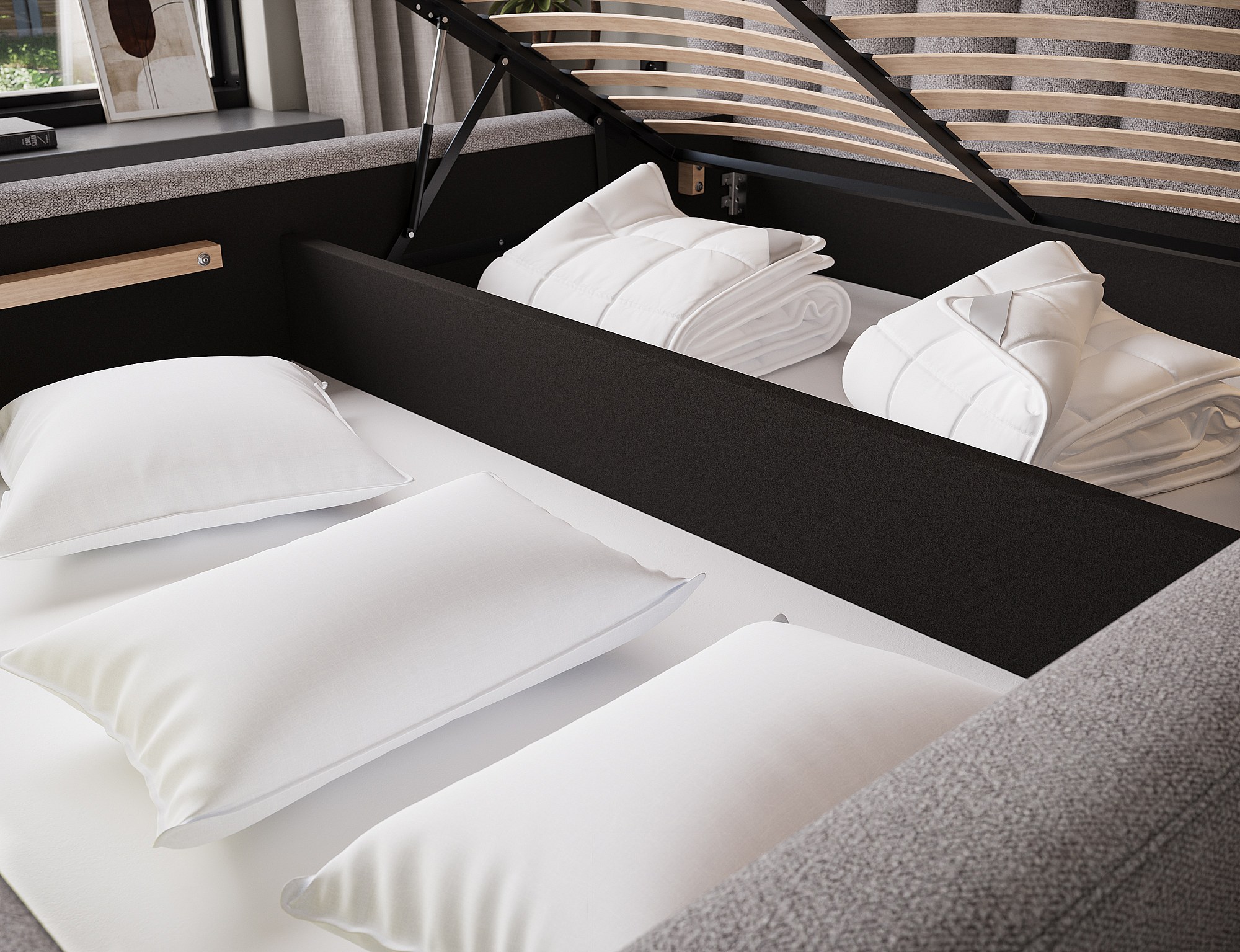Lit Pella/160x200/sommier à lattes/revêtement tissu/Gris
