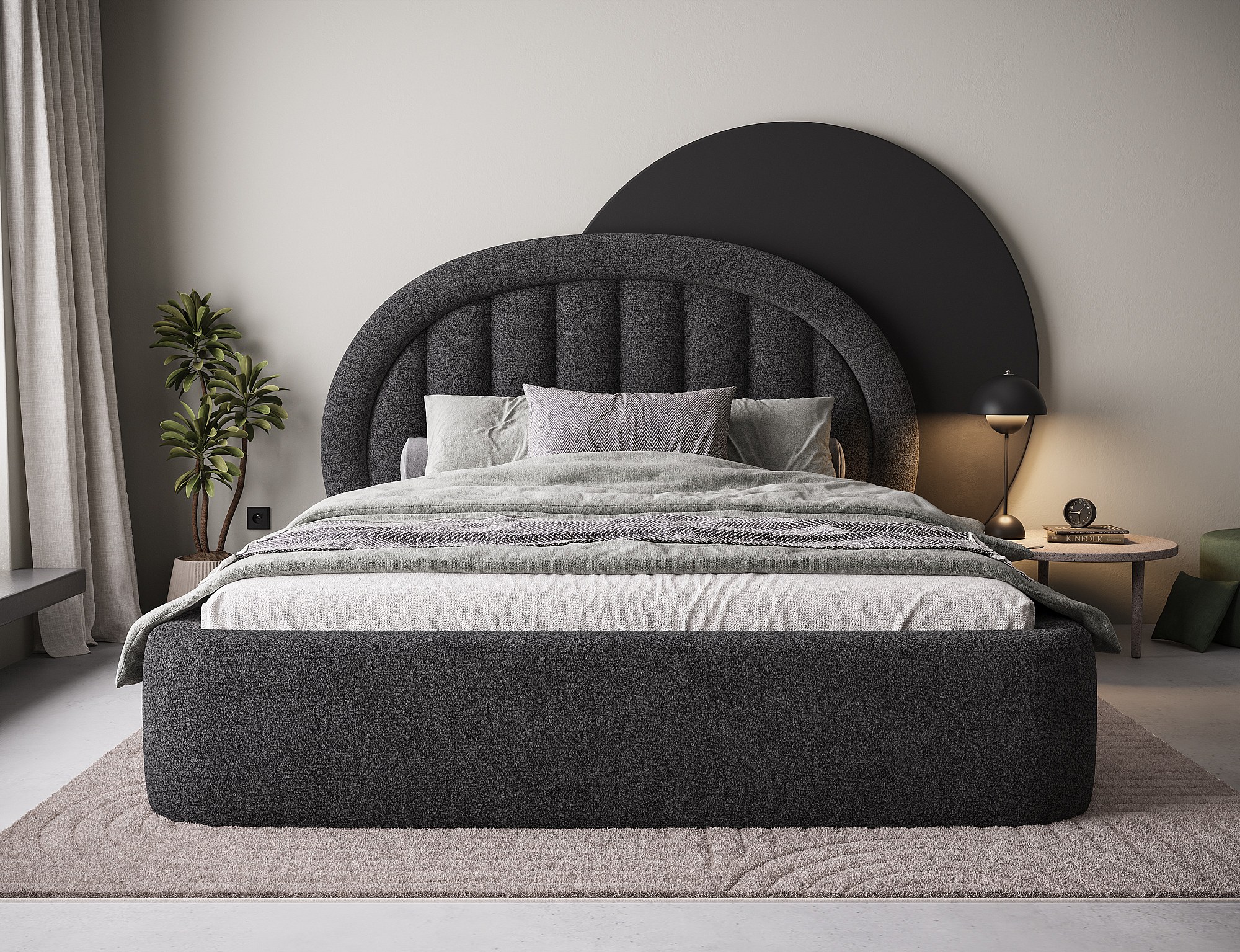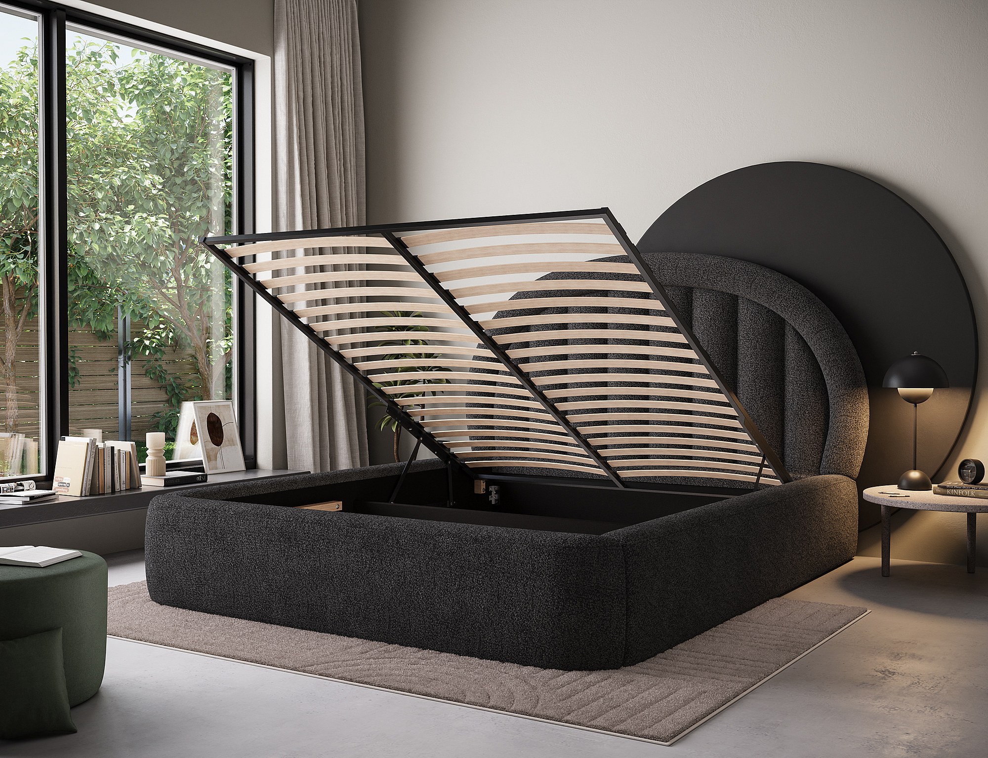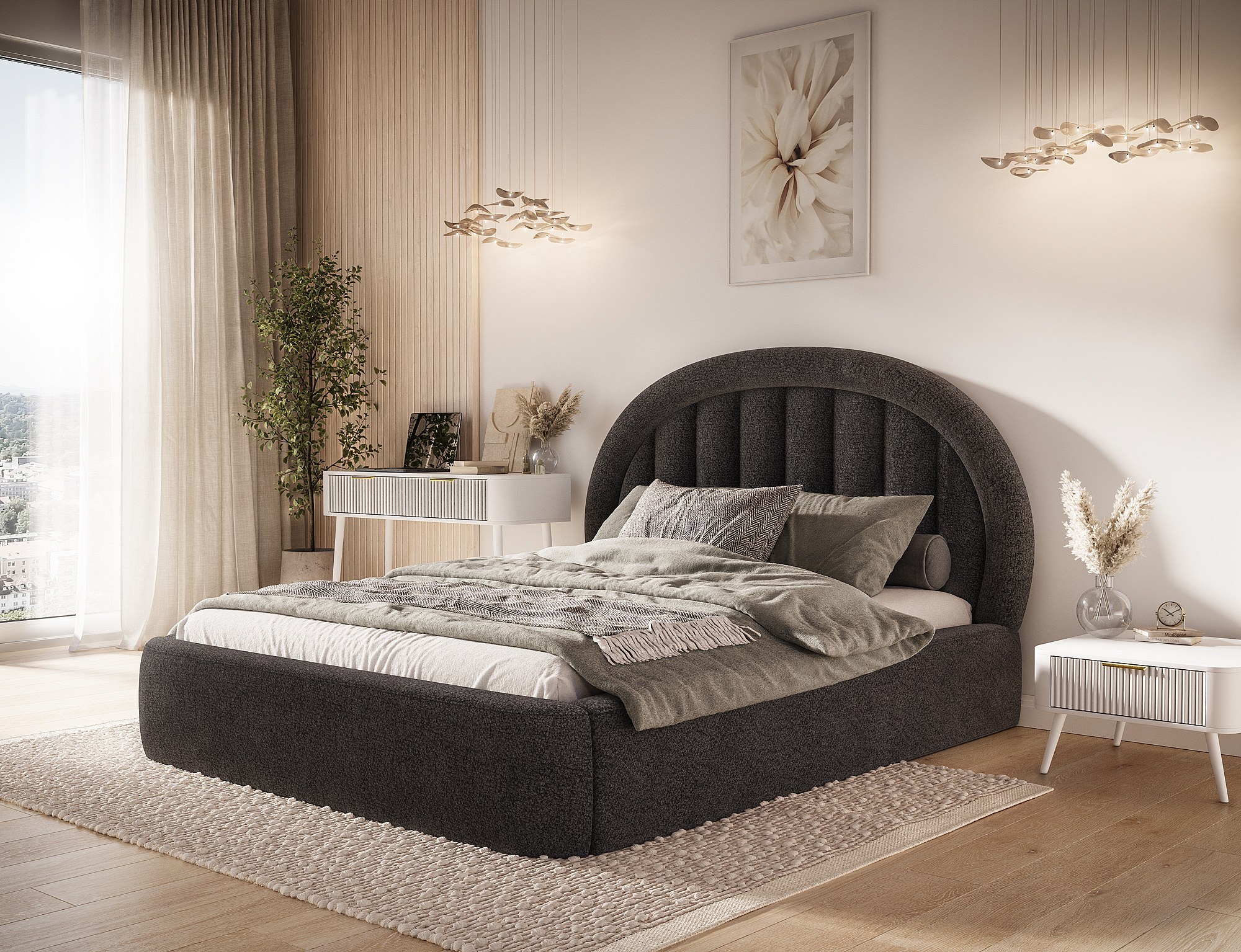 Lit Pella/160x200/sommier à lattes/revêtement tissu/Noir