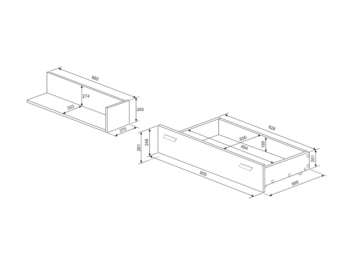 - Tiroir : L95 x P69 x H24 cm