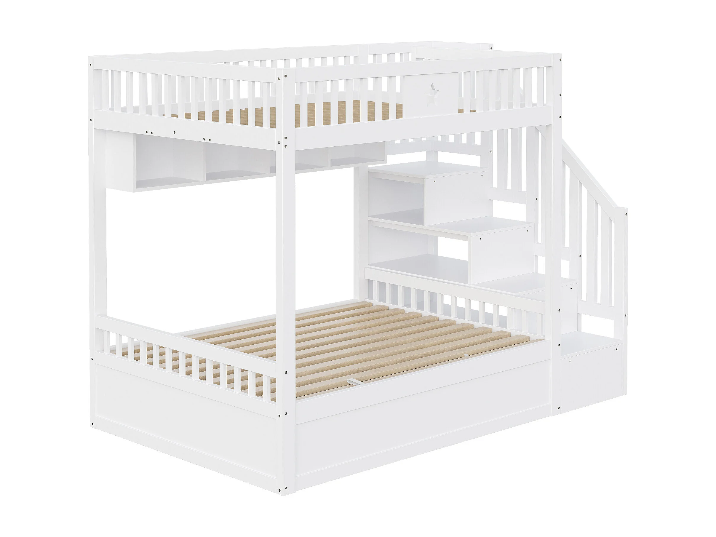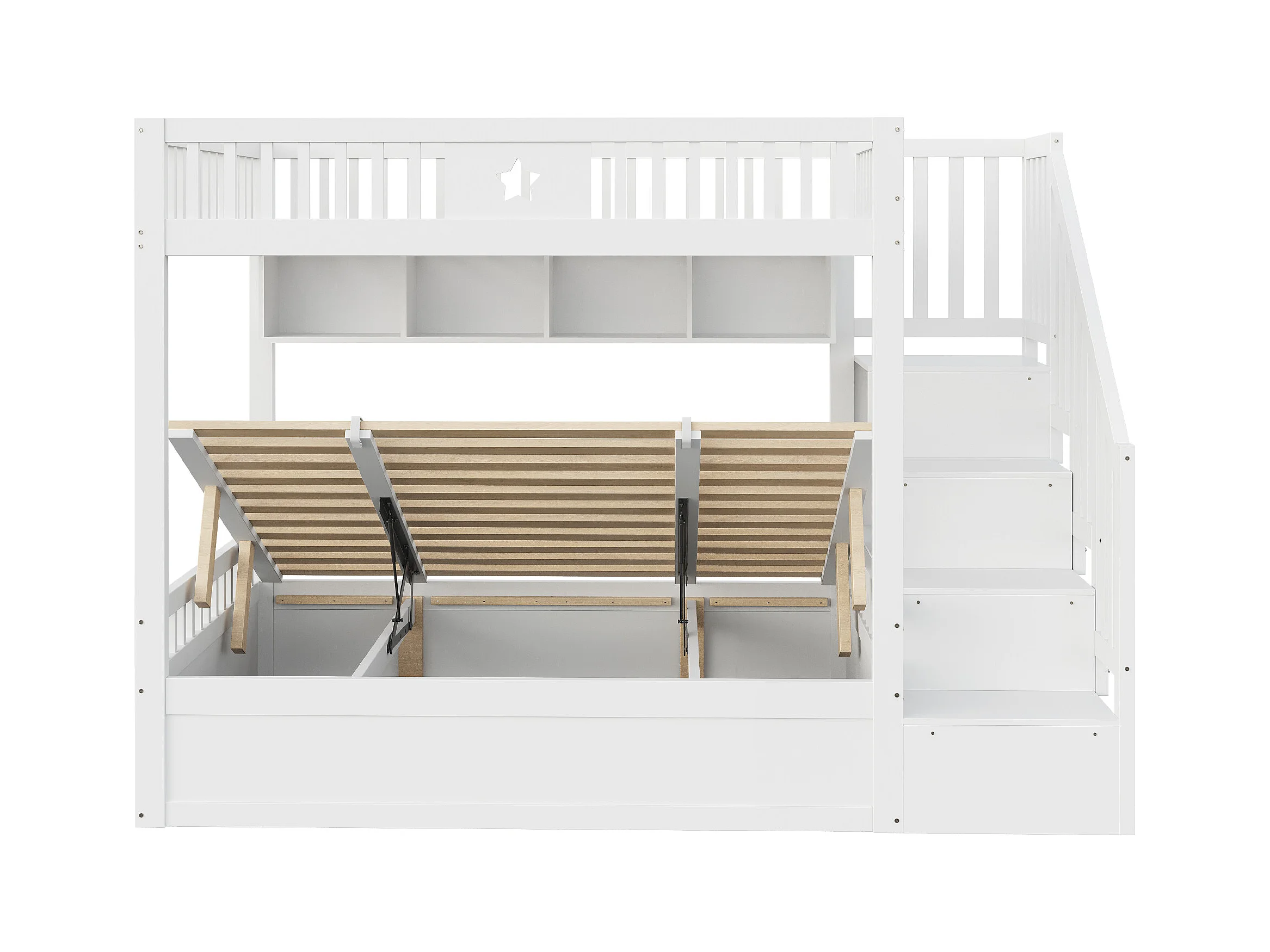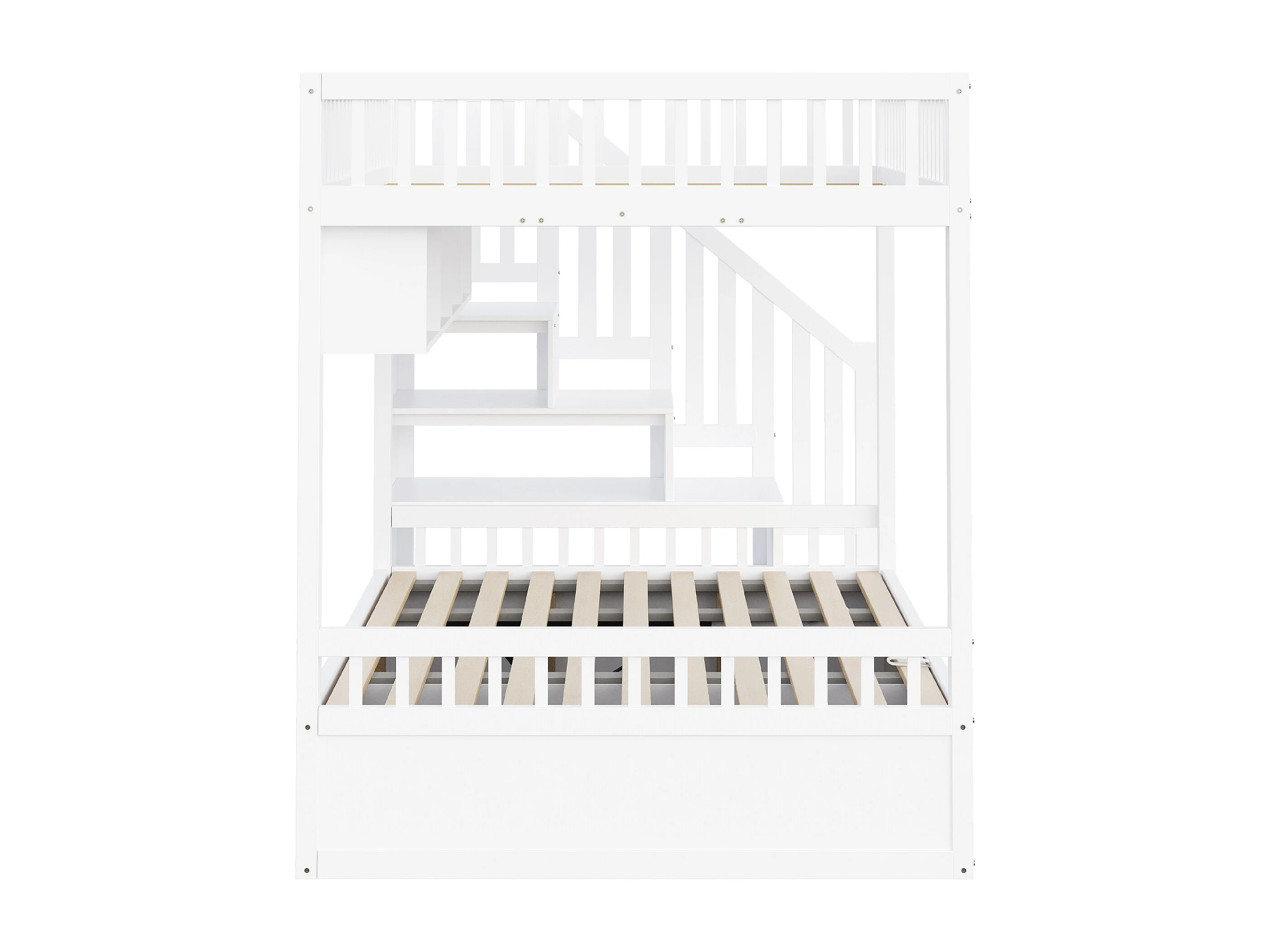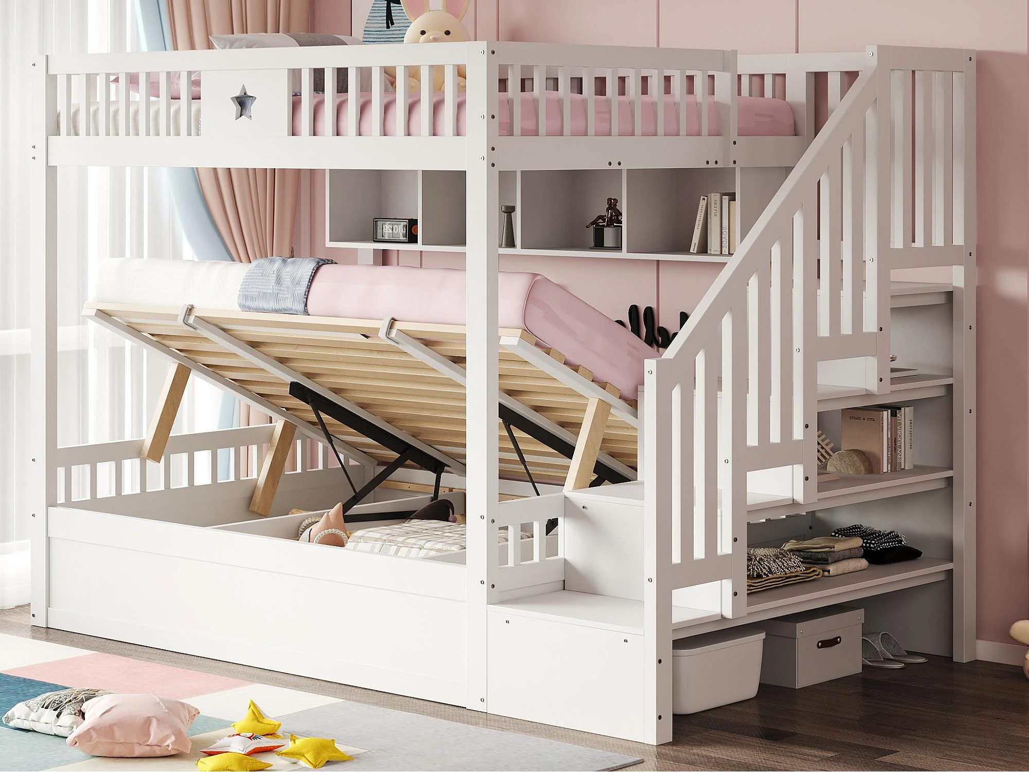 Lit superposé 140x200cm - Lit coffre en dessous - avec échelle de sécurité - avec coffre de rangement - blanc