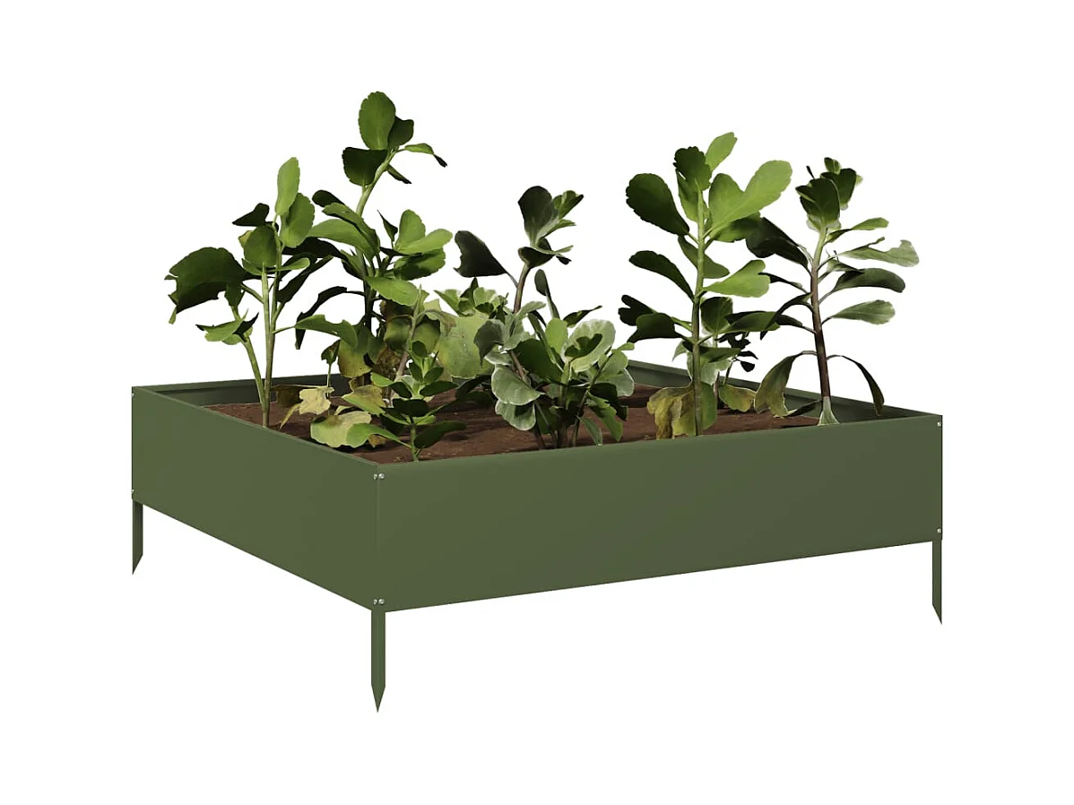 Lit surélevé de jardin vert olive 100x100x25 cm acier