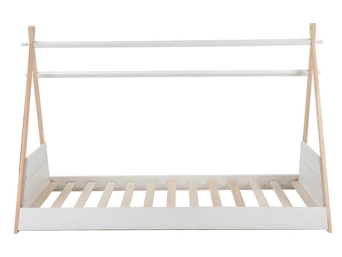 Lit tipi SIOUX - 90 x 190 cm - Pin - Blanc et chêne + matelas
