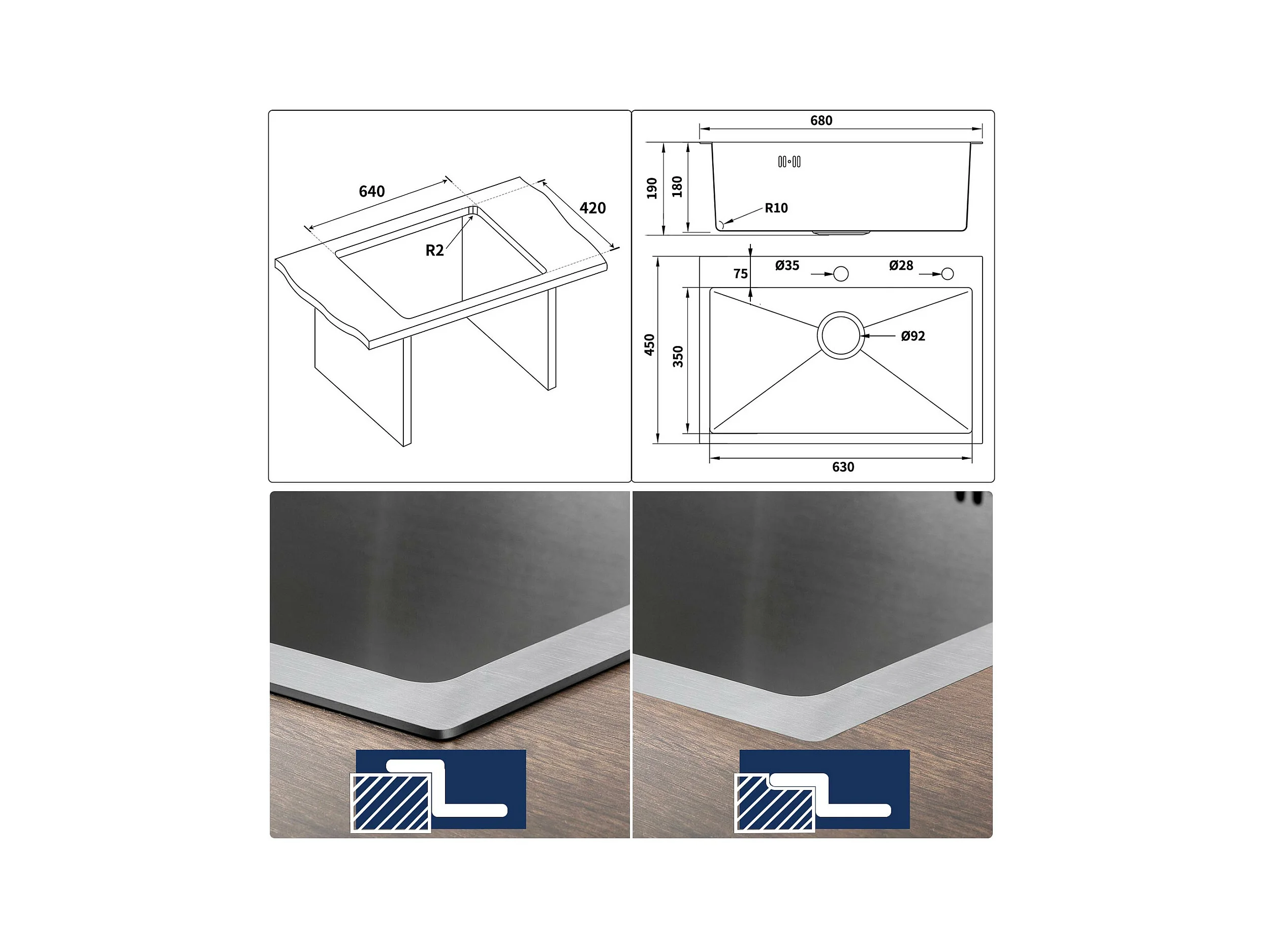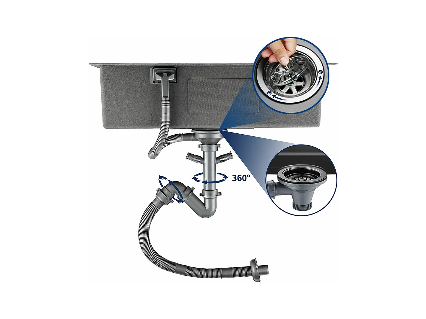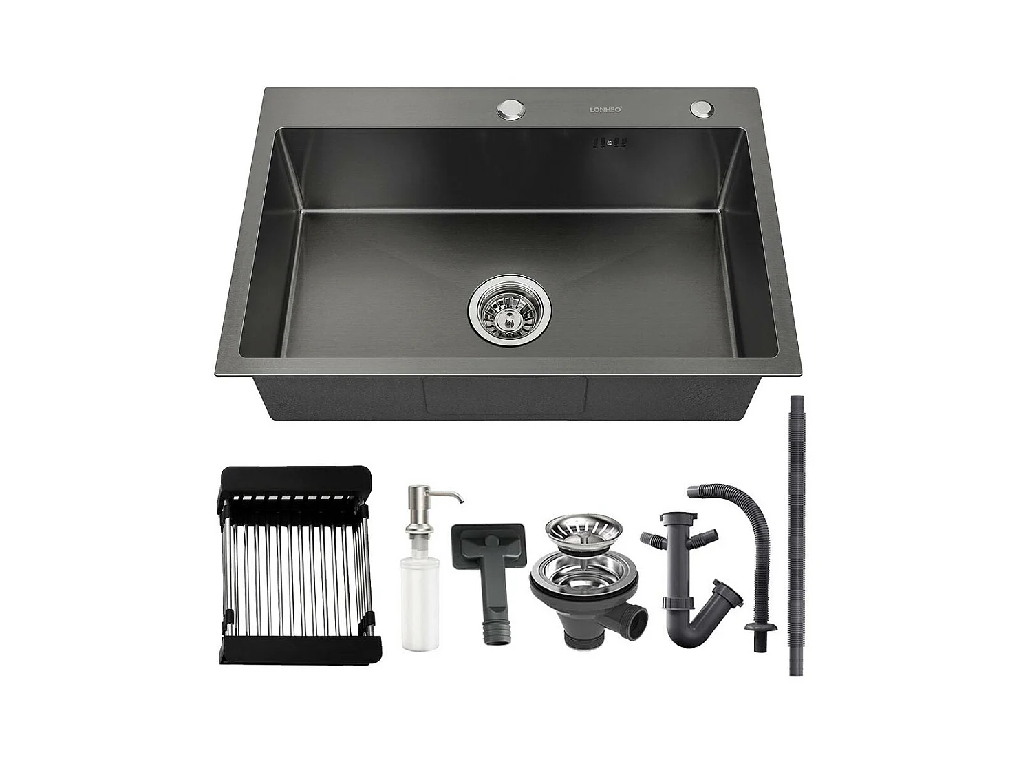LONHEO MAX Évier de Cuisine Noir 68x45x19CM avec Distrubuteur de savon et Égouttoir panier