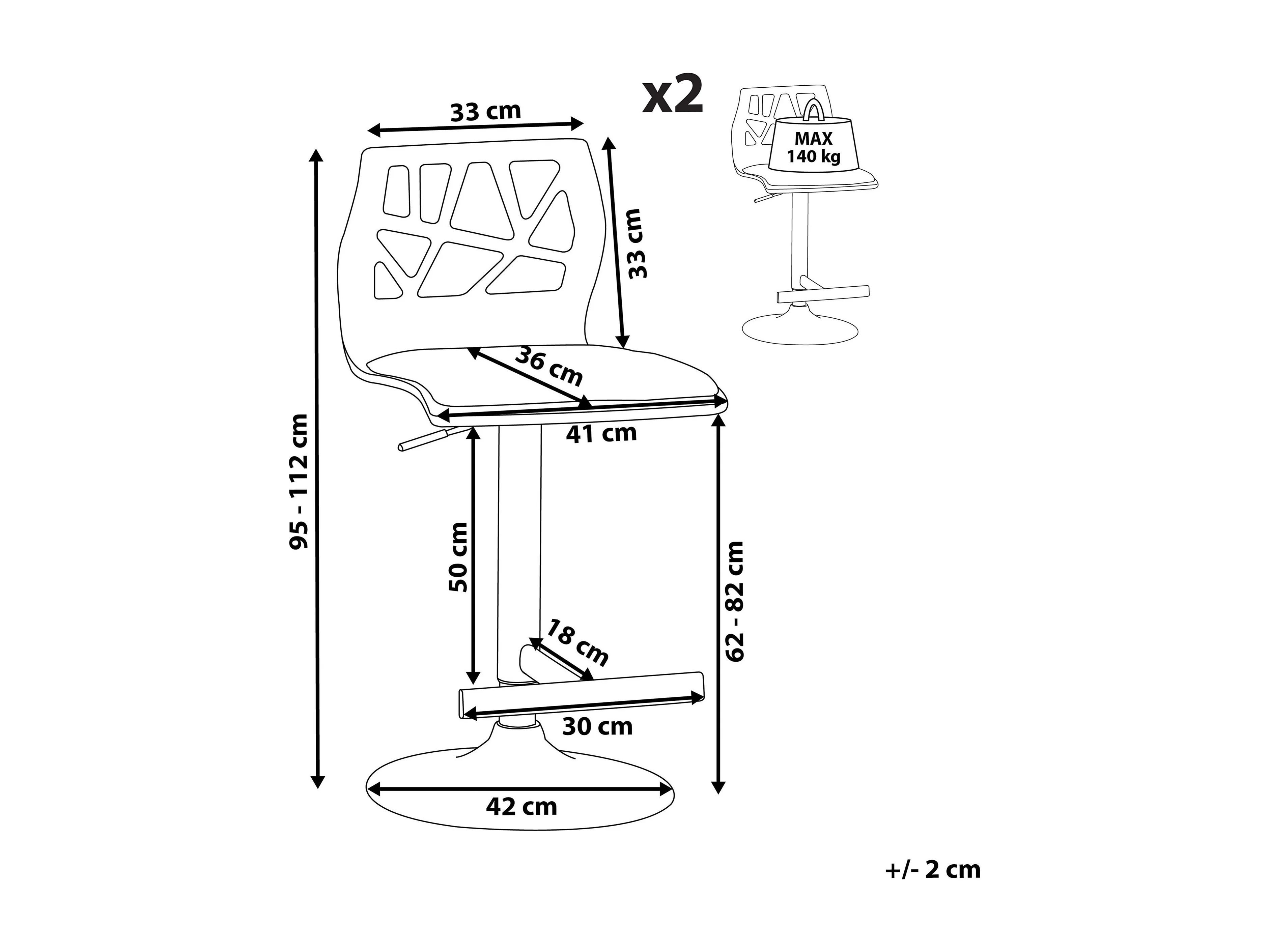 Chaises de bar lot de 2 40x41,5x112 cm bois de pin solide